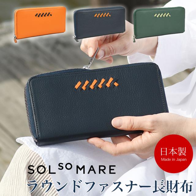 ラウンドファスナー長財布 SOLSOMARE ソルソマーレ リーヴァ Riva ロングウォレット レディース 本革 レザー 牛革 国産レザー 日本製 YKKエクセラファスナー 職人 編み込み ユニセックス シュリンクレザー