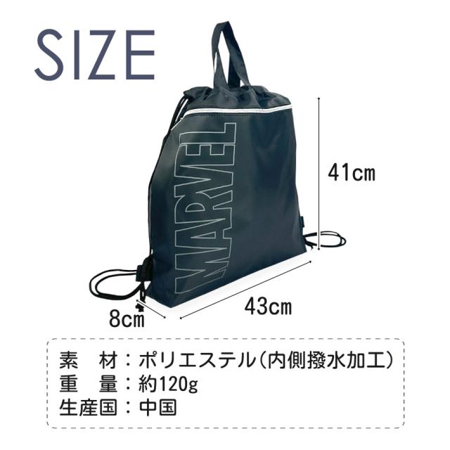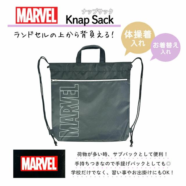 ナップサック 男の子 おしゃれ かわいい ナイロン 128591 MARVEL マーベル ナップサック サブバッグ こども 男子 低学年 高学年 小学生 体操服入れ 体操着入れ 体操着袋 着替え入れ 巾着幼稚園袋 入園グッズ 入学グッズ 修学旅行 保育園 幼稚園 こども園 学童 プールバック