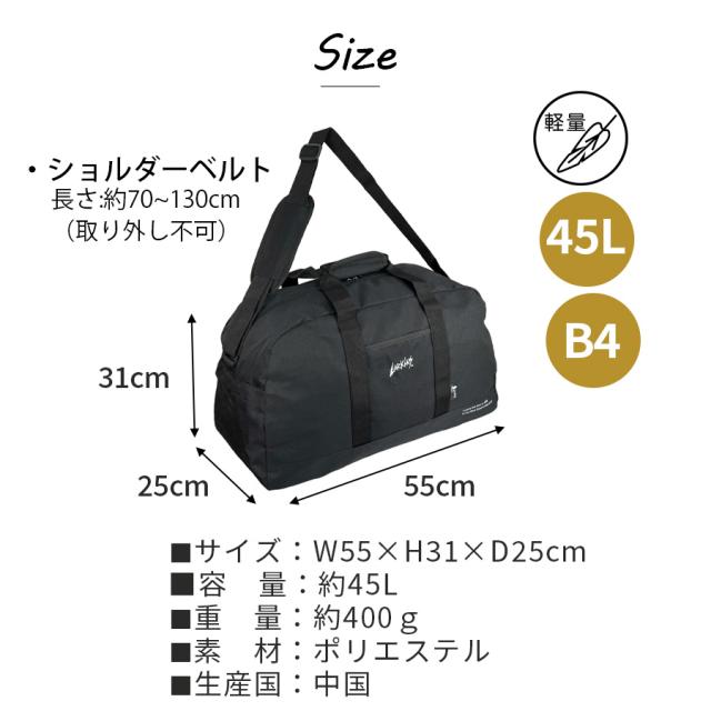 ボストンバッグ 修学旅行 メンズ 男の子 小学生 ブランド 2lka5bt03 LARKINS ラーキンス 2way ボストン 45L 2泊 3泊 大容量 軽量 かっこいい おしゃれ 人気 メンズ レディース 中学生 高校生 ジム 部活 合宿 スポーツバッグ ブラック 黒 クロ