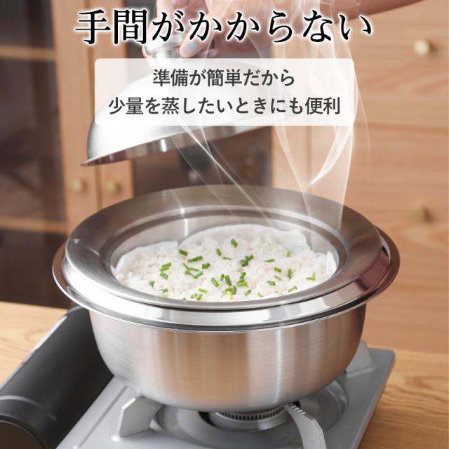 お手持ちのフライパンやお鍋にセットするだけで、蒸し鍋に早変わり。