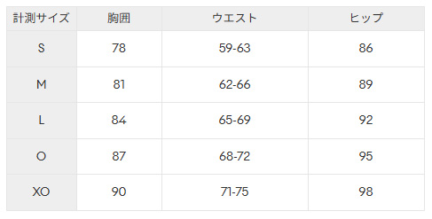 サイズ:バスト / ウエスト / ヒップ