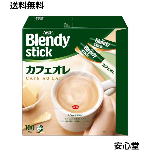 「カフェオレは、得意なんです。ブレンディ。」でおなじみの「Blendy(ブレンディ)」 スティックは、クリーミー&スイートな味わいがスティック1本で手軽にマグカップサイズで楽しめる人気のインスタント スティックシリーズです。 AGF(エージーエフ) 「ブレンディ」 スティック カフェオレ100本は、たっぷり、うれしいマグカップサイズで毎日手軽に楽しめる、リッチな味わいのカフェオレのお得な大容量サイズです。1杯1杯がいつも新鮮な個包装スティックタイプ。 カフェオレ専用のコーヒー、ミルク、砂糖のベストバランスを考えて特殊なミキサーで混合。いつでも変わらないおいしさを実現したスティックコーヒーです。甘さレベル3(AGF ブレンディ スティック カフェオレ比較) 通常のインスタントコーヒーで作るカフェオレとの違いとご体験ください。 スティック1本にいつもの半分のお湯と氷を入れれば、簡単にアイスカフェオレもお楽しみいただけます。