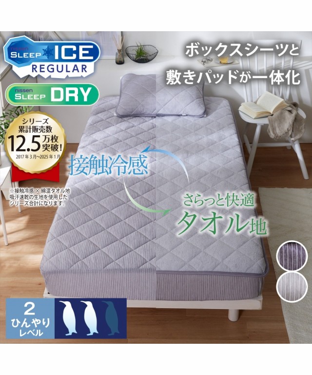 敷きパッド 寝具 接触冷感 ×綿混 タオル 地リバーシブル ボックス シーツ 一体型 夏 敷パッド シングル ニッセン nissen
