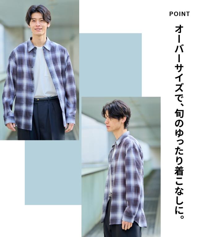 シャツ カジュアル メンズ オーバーサイズシアーチェック 長袖 有 M/L/LL ニッセン nissen