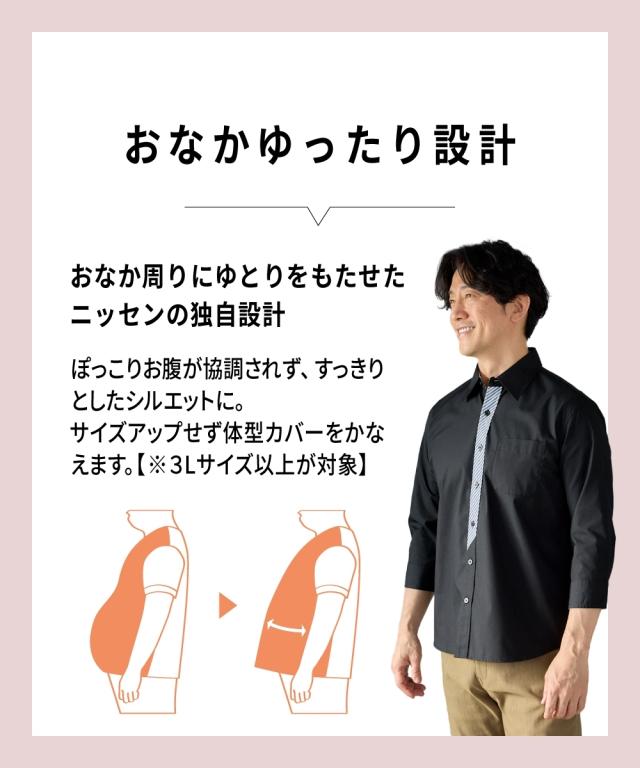 シャツ カジュアル メンズ 前立て デザイン 7分袖 有 ビッグ ラージ 3L〜10L ニッセン nissen
