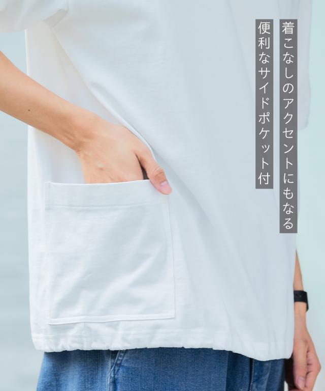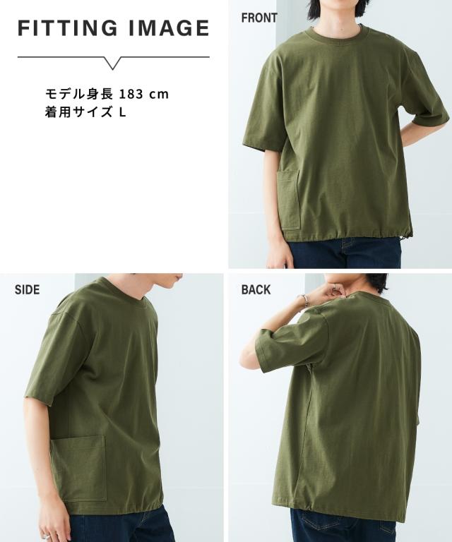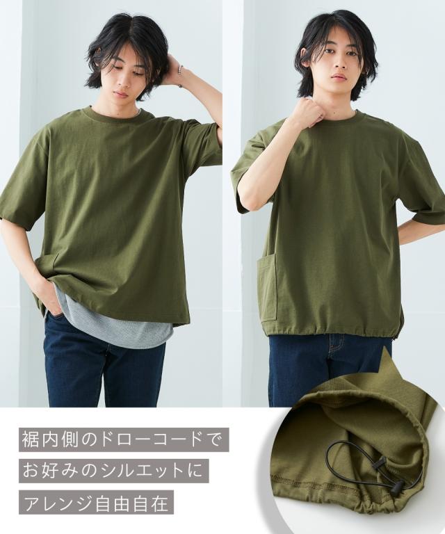 Tシャツ カットソー メンズ 綿100% オーバーサイズ裾ドローコード脇ポケットTシャツ 有 ビッグ ラージ トップス 3L〜10L ニッセン nissen
