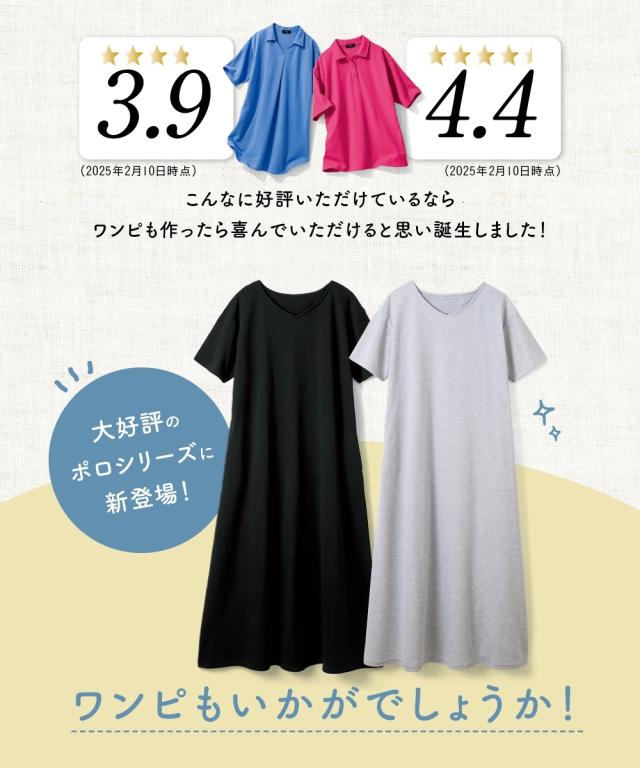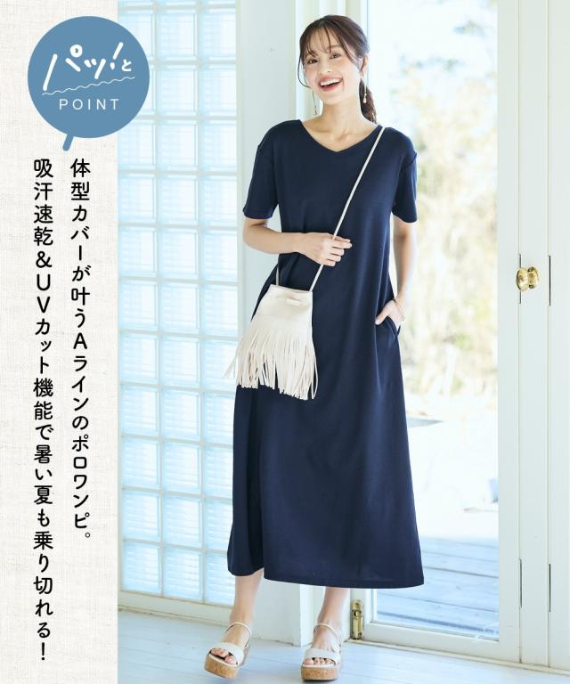 吸汗速乾・UVカットカノコすっきりVネックワンピース