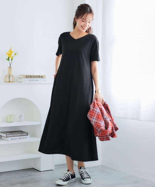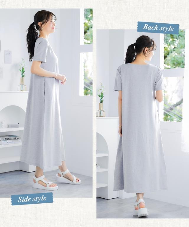 ワンピース ロング マキシ レディース 吸汗速乾 UVカット カノコすっきり Vネック 有 夏 ひざ下 S/M ニッセン nissen