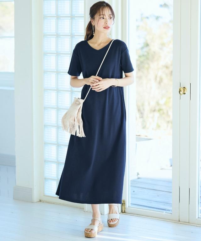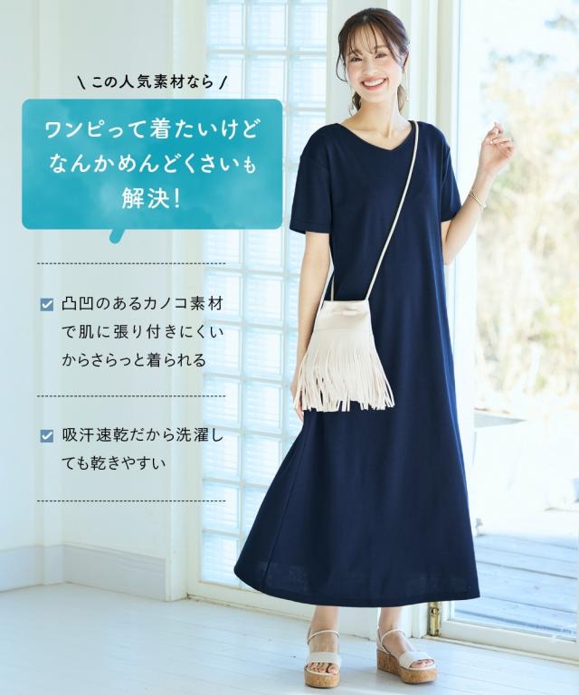 吸汗速乾・UVカットカノコすっきりVネックワンピース