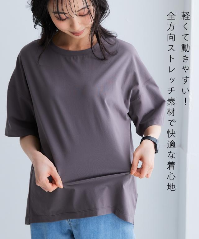 Tシャツ カットソー 大きいサイズ レディース 全方向 ストレッチ 軽量5分袖Tシャツ 吸汗速乾 UVカット 有 夏 4L/5L/6L ニッセン nissen