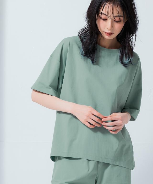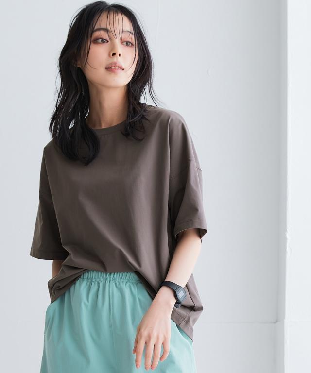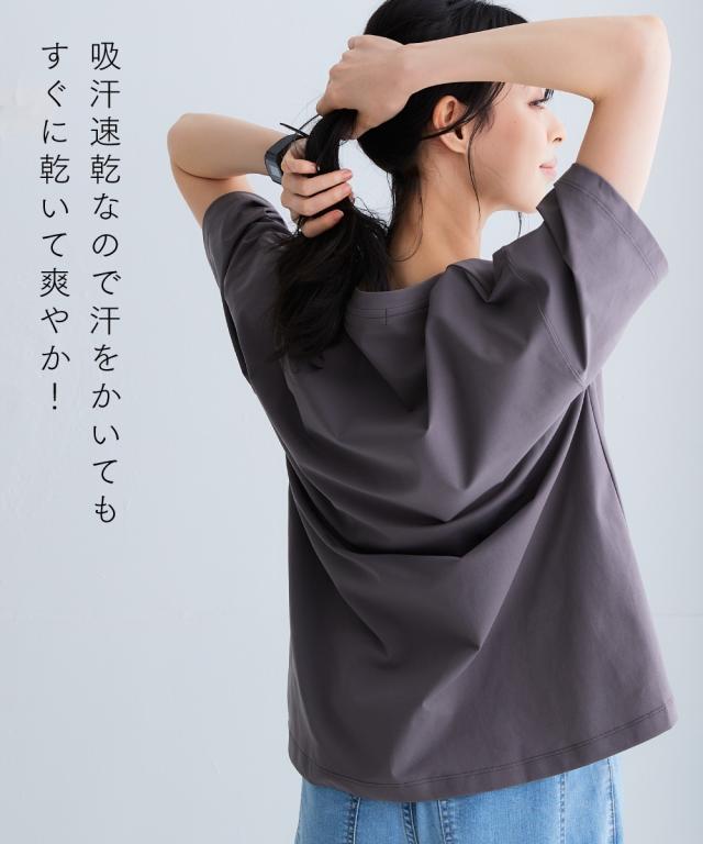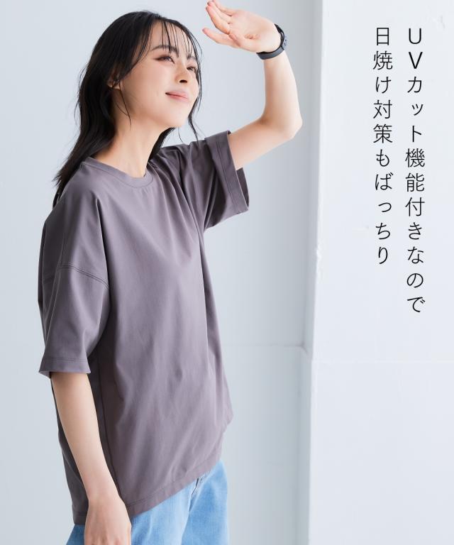 スポーツラインにオリジナルのアクティブウェアが初登場!アクティブなシーンだけでなく、おしゃれ着としても着用できます。■デザインサイドの切り替えが前に入った細見えデザインのTシャツ。後ろを長めの丈にしているので気になるお尻回りもカバー。首元は程よい開きのクルーネック仕様。襟裏テープ付き。■素材軽量で縦・横にストレッチ性のある生地なので動きやすく、快適に着用できます。ポリエステルなのでシワになりにくく、乾きやすいため普段使いにも便利。吸汗速乾機能付きなので汗をかいてもすぐに乾くのでさらっと爽やかに着用できます。UVカット機能付きで日焼け対策もばっちり。ジムやスポーツなどのアクティブなシーンやリラックスシーン、街中でのタウンユースコーデとしてなど幅広く着用できます。■コーディネート同素材シリーズでコーディネートできます。シンプルなTシャツなのでデニムやスカートなどお持ちのアイテムで簡単にコーディネートできます。