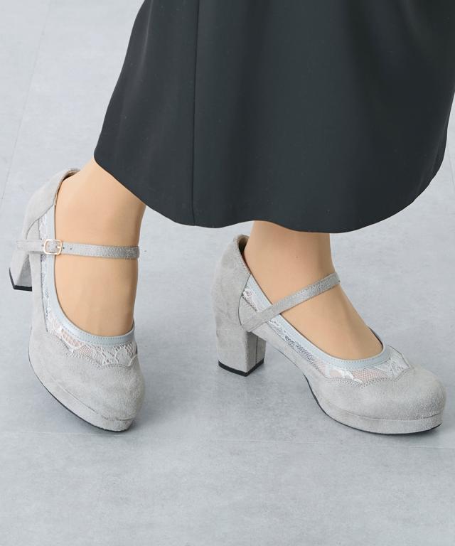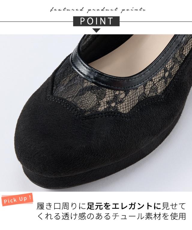 つま先、ヒール、アッパーデザインが上品さとフェミニンさを演出してくれるレースチュールパンプス。さりげないレースチュールのデザインが足元に上品さとオシャレ感をプラス。ホック式のストラップで、脱ぎ履ぎ楽チンです ■ポイント・約7cmのヒール高が、前ストームが約1.5cmあるので足の傾斜が減り、チャンキーヒールで歩きやすい・ストラップ付でホールド感&安定感アップ!・低反発中敷入りで疲れにくく歩きやすいのもうれしいポイント・パーティ、セレモニーなどのフォーマルシーンまで幅広く活躍・アッパーのカッティングと透け感のあるチュールの組み合わせが可愛らしさもプラス【ニッセンオリジナルの大きいサイズ規格】本当に合う靴に出会った事はありますかニッセンの4Eは、靴底の幅を広げ、甲や足首周りもゆったりの独自設計。靴のサイズにお悩みのお客様へ向けて、サイズが大きくてもバランス良くきれいに見えるよう企画したオリジナルシューズです。