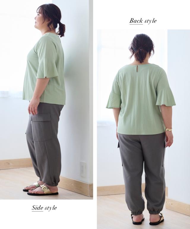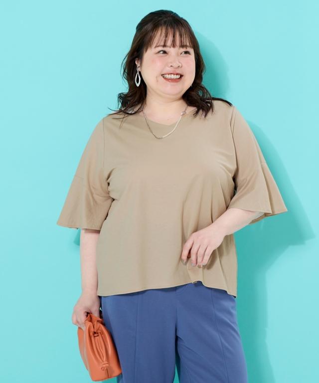 大きいサイズ 美ラクRUタッチ5分フレア袖 ネックプルオーバー(接触冷感・UVカット・抗菌防臭)