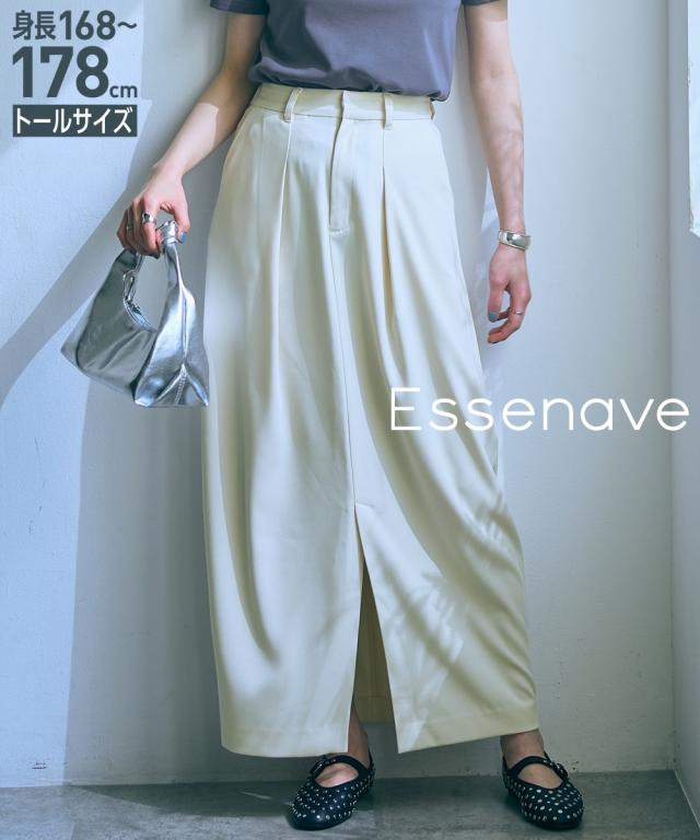 ロングスカート トールサイズ レディース 高身長 タックコクーン ロング スカート Essenave マキシスカート 長め ロンスカ LL/3L/4L/5L ニッセン nissen