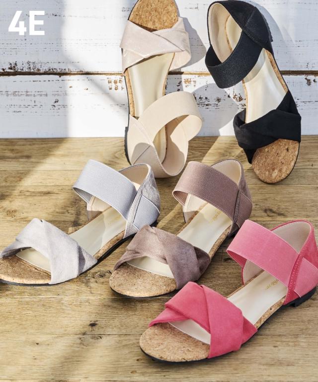 【ゆったり幅広】ツイストデザインゴムストラップサンダル(低反発中敷)(ワイズ4E)