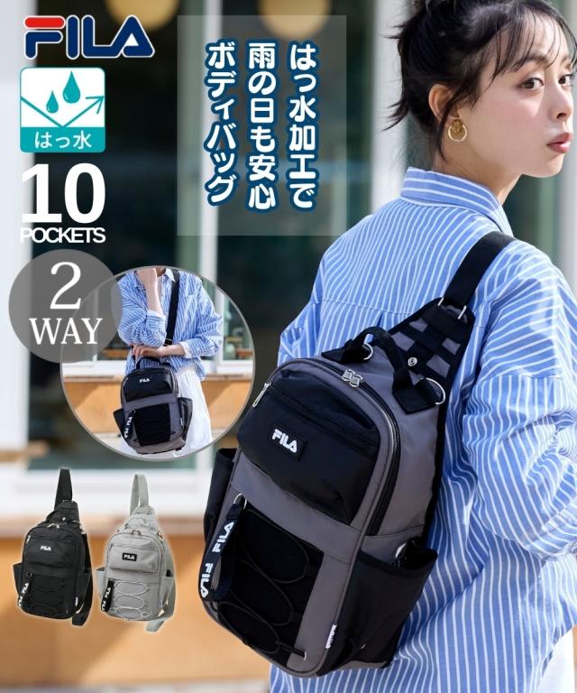大きいサイズ レディース FILA 肩ひも長め10ポケットはっ水2WAYボディ バッグ かばん かわいい おしゃれ