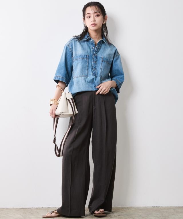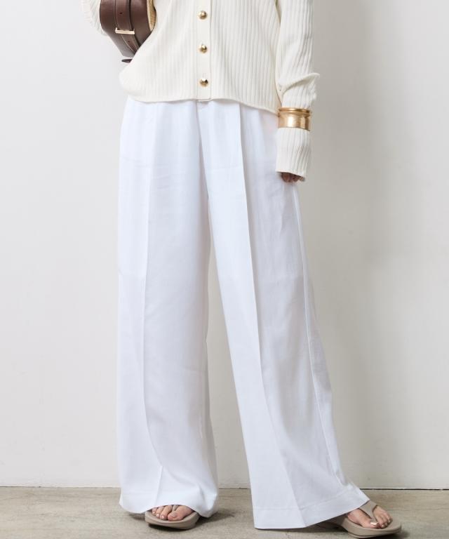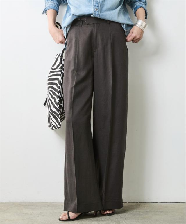 程よく落ち感のあるレーヨン麻素材のゆったりワイドパンツ。■デザイン全体的にゆったりとしたシルエットで、リラックス感のあるワイドパンツ。センタープレス入りなのですっきり足長効果も期待できます。シンプルなのでカジュアルスタイルからキレイ目スタイルまで、幅広いコーディネートに対応できる万能アイテムです。■素材ほどよく落ち感のあるレーヨン麻素材。■おすすめのスタイリング同素材のシャツをあわせたエレガントなスタイル、Tシャツとあわせてカジュアルダウンさせても素敵です別売り同素材のシャツを合わせてた洗練されたセットアップスタイルもオススメです。