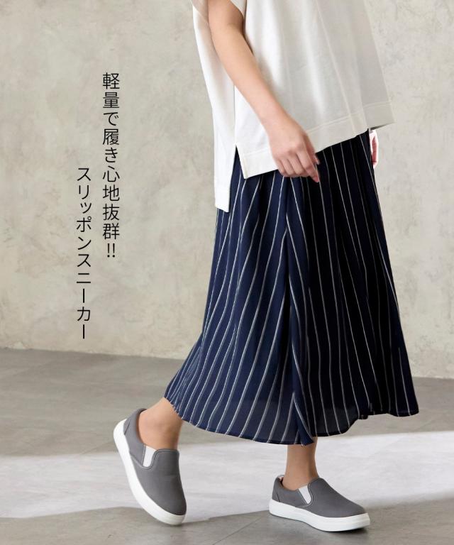 大きいサイズ レディース ゆったり幅広 軽量 スリッポン スニーカー 低反発中敷 ワイズ4E 靴 シューズ 23.0〜23.5/24.0〜24.5cm ニッセン nissen