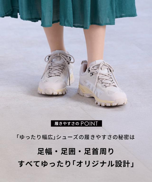 大きいサイズ レディース ゆったり幅広 アウトドア調 レース アップ スニーカー ワイズ4E 靴 シューズ 23.0〜23.5/24.0〜24.5cm ニッセン nissen