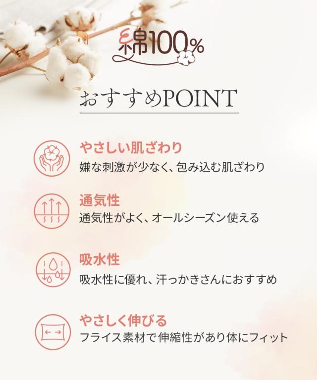 お肌に優しい綿100%フライスインナー 素肌に直接触れるインナーだからこそ、通気性良く肌ざわりのやさしい綿100%をおすすめします。 <天然素材100%> 天然素材コットン100%のインナーは、通気性や吸水性に優れており、さらりと快適な着心地が特徴です。 汗ばむ季節は、吸湿性により汗をすばやく吸収してさらりとした着心地を保ち、冬は保温性により暖かいため、一年を通して、快適に着用できます。 ふんわりとした優しい肌触りで下着の刺激やムレが気になる方にもおすすめです。 <着心地のよい素材> フライス素材ならソフトに横伸びして快適な着心地。 心地よい柔らかさでソフトな風合いが魅力です。 胸元元レースデザイン。 <こんな方におすすめ> ○お肌に優しい素材 ○通年着られる ○豊富なサイズ展開