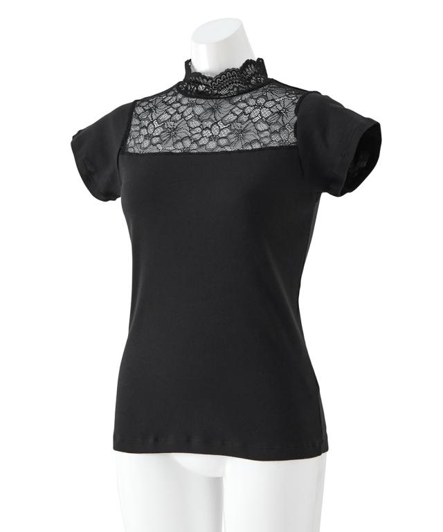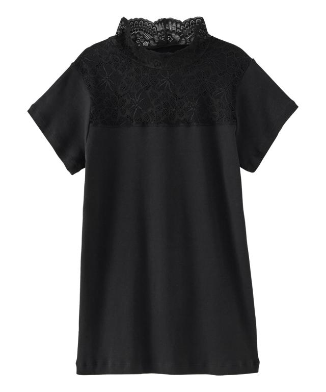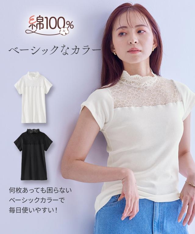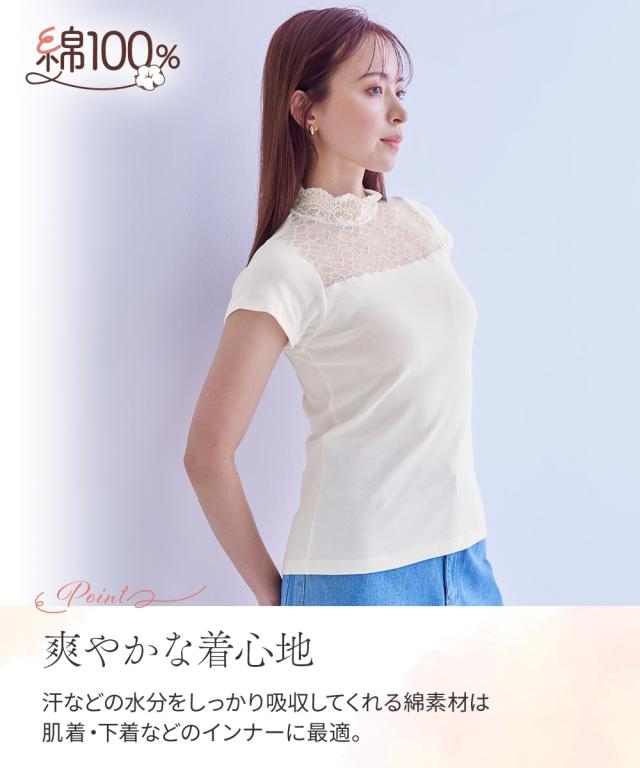 タンクトップ レディース 綿100% レース ハイネック フレンチ袖 インナー ノースリーブ 肌着 女性 4L/5L/6L/8L/10L ニッセン nissen