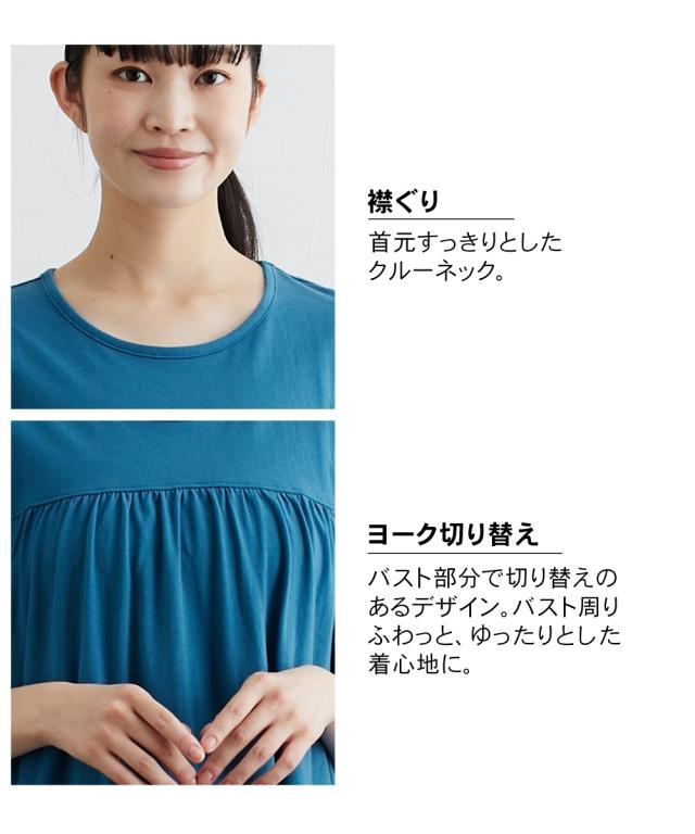 寝る時こそ選びたい、肌にやさしい綿100%パジャマ&ルームウェア☆ 肌ざわりのよい、さらっとした綿100%の天竺素材。天竺ニットはTシャツにも使われる薄手で伸縮性のある素材。綿は通気性や吸水性に優れており、蒸れにくく快適な着心地です。バスト下の切り替えでふわっとしたシルエットに。。ゆったり設計なので着脱もラク!二の腕をカバーする、ちょっと長めの袖丈もうれしい。 【おすすめポイント】 ■肌にやさしい天然素材の綿100% SZ天竺を使用し、なめらかでさらっとした肌触り。ほどよい伸縮性があり、パジャマにちょうどいい素材です。綿は通気性や吸水性に優れており、快適な着心地です。 ■ゆったりとしたかぶりタイプ サッと着用できるかぶりタイプ。ゆったりとしたシルエットで締め付け感なく楽な着心地です。 ■プリントの洗濯ネーム 通常脇にある洗濯タグをプリントに。 気になるチクチク感がなく肌当たりやさしい。