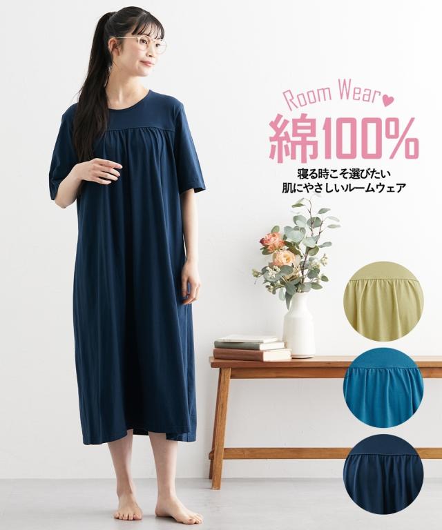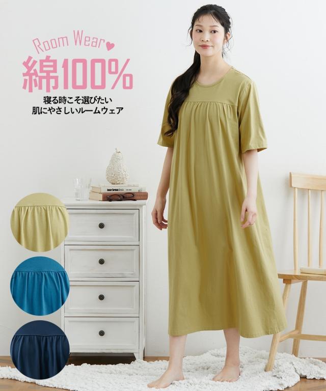 パジャマ 大きいサイズ レディース 綿100%さらり天竺のルーム ワンピース ルームウェア 部屋着 女性 4L〜5L/6L/8L/10L