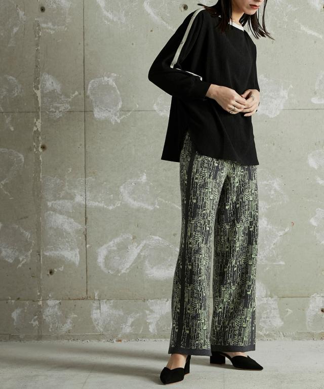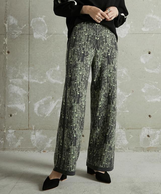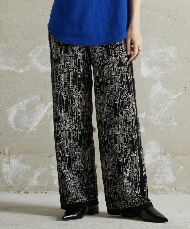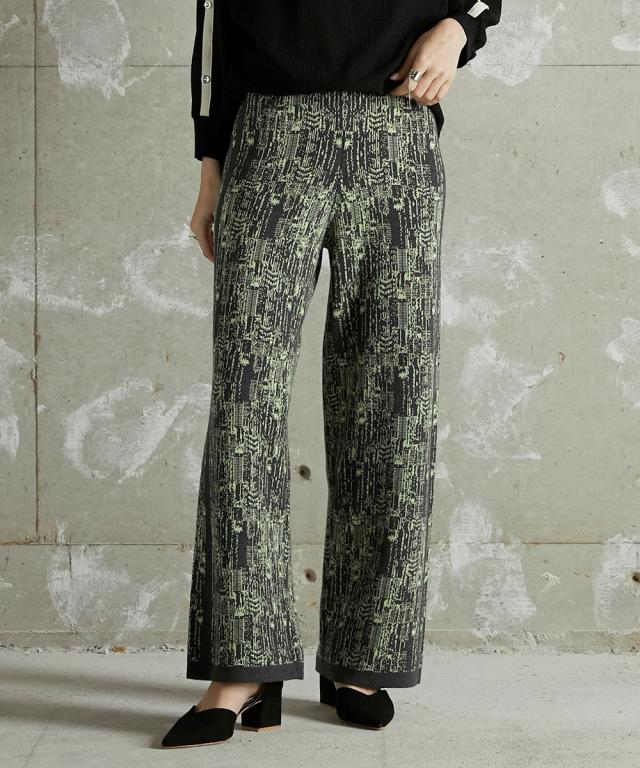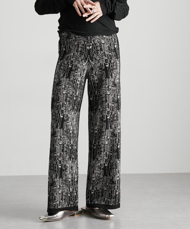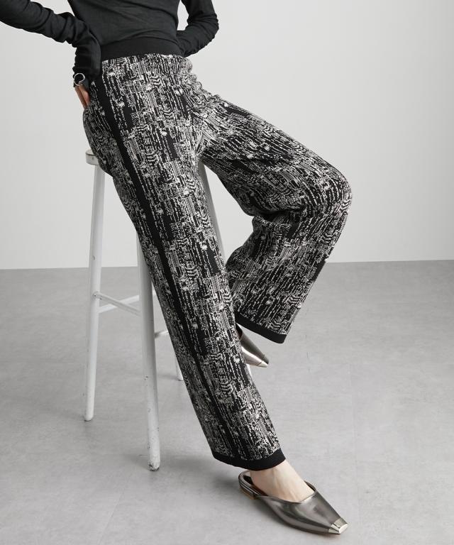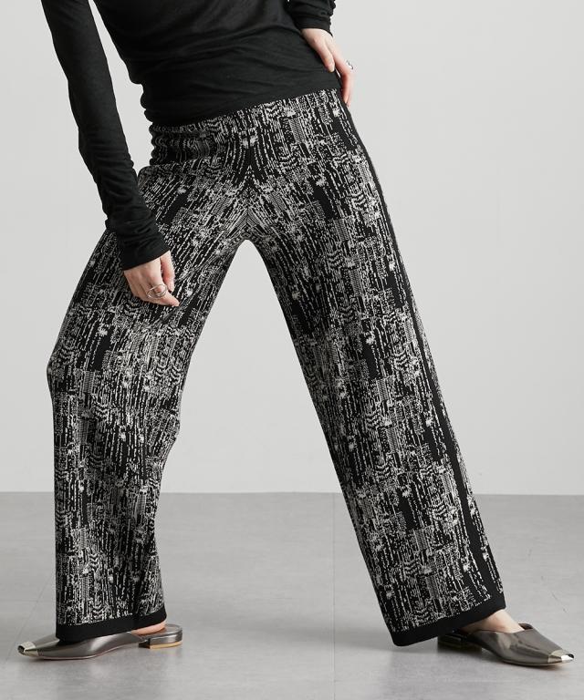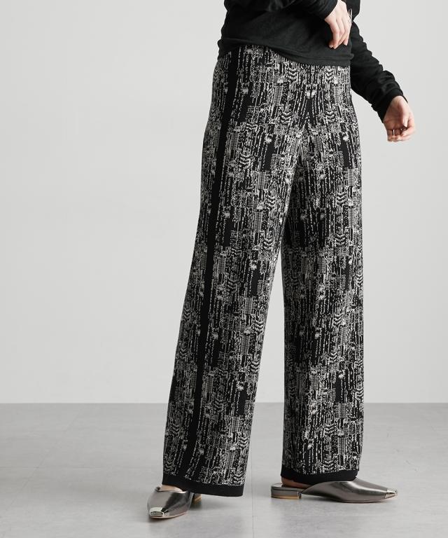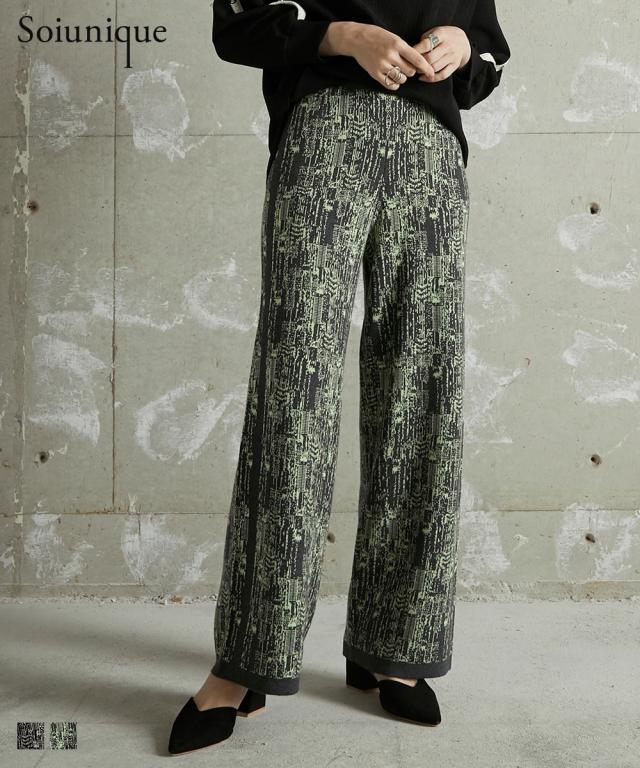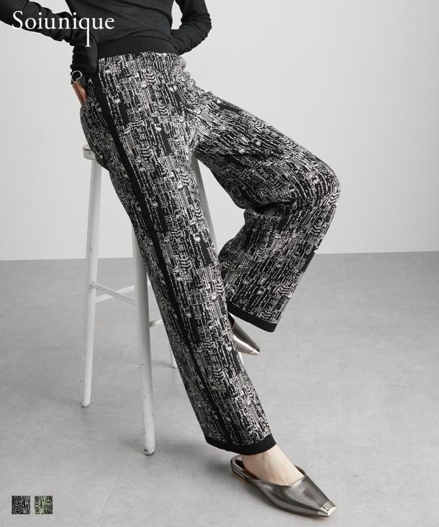 ワイドパンツ レディース 総柄 デザイン ストレート ニット パンツ Soiunique 冬 ゆったり 体型カバー 美脚 ボトムス ズボン M/L/LL ニッセン nissen