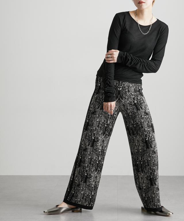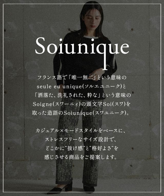 ■デザイン・総柄デザインストレートニットパンツ・ニット素材で、柔らかく伸縮性があり、快適な着心地・ニュアンス総柄デザインが特徴的で、 目を惹く配色で大人っぽい印象を与えます。・ストレートシルエットなので足長効果もばっちりで、 どんな体型でもバランスよく着こなせます。・ウエストゴム仕様なのでフィット感があり楽ちん着用!・シンプルな配色に微妙な色合いの変化が施されており、 シンプルながら洗練されたスタイルを楽しめます。■素材・アクリルの軽さと保温性、綿の通気性と柔らかさを兼ね備えた素材感・柔らかく快適な着心地で、適度な伸縮性があり長いシーズン着用可能■おすすめのスタイリング・オールブラックのコーデに1枚着用するだけでもサマになり、 シンプルなTシャツ+デニムと合わせてもしっかりこなれ感のあるコーデに ◇【Soiunique/スワユニーク】唯一無二のアナタへ———カジュアル×モードスタイルをベースに、ストレスフリーなサイズ設計でどこかに”抜け感”と”格好よさ”を感じさせる商品をご提案。体型カバーやスタイルアップも叶えつつ、コンプレックスを個性にして自分のスタイルを貫く唯一無二のアナタへ。