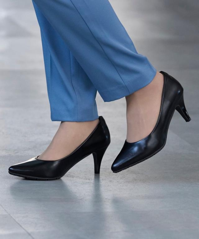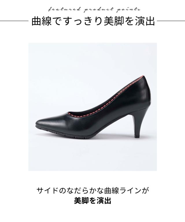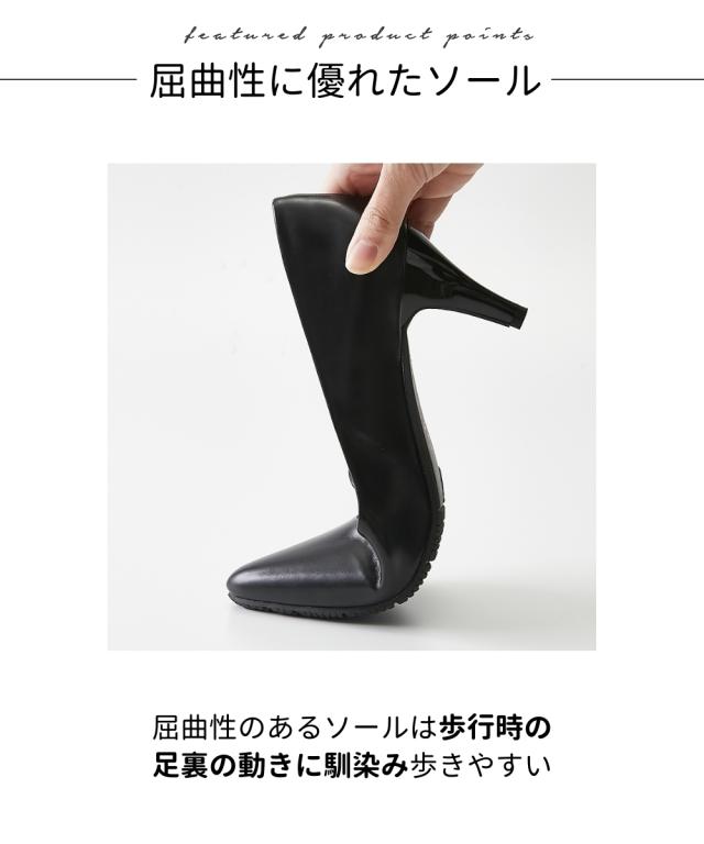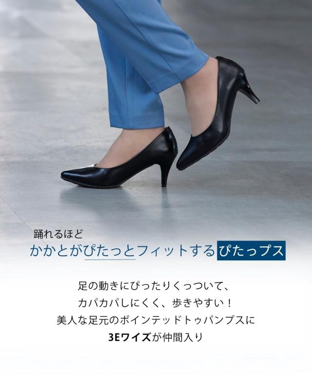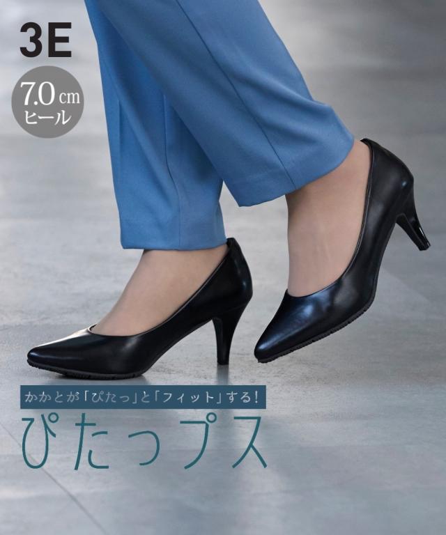 かかとに「ぴたっ」と「フィット」する【ぴたっプス】シリーズびワイズ3Eが登場!!どこから眺めても美しいシルエット、さらに履き心地にも磨きをかけた一品です。シンプルなデザインだから、通勤スタイル、スーツ、フォーマルな場にも幅広く合わせていただけます。■ポイント・3Eワイズでややゆったり仕様・ヒールが苦手な方にもトライしやすいヒール高7cm・つま先をそり上げ踏み込みによるかかとの浮きを防止・かかとのクッション素材や位置を見直しより脱げにくい工夫をプラス・履き口のサイドラインをなめらかな曲線にすることで、美しさをアップ・シャープ過ぎず上品見えを叶えるポインテッドトゥ・足の形に合わせて履き口を広くし、甲周りの窮屈感を軽減・ソフトで優しい足あたりの低反発中敷きを使用・足裏の動きに合わせて、柔らかく屈曲するソールを使用