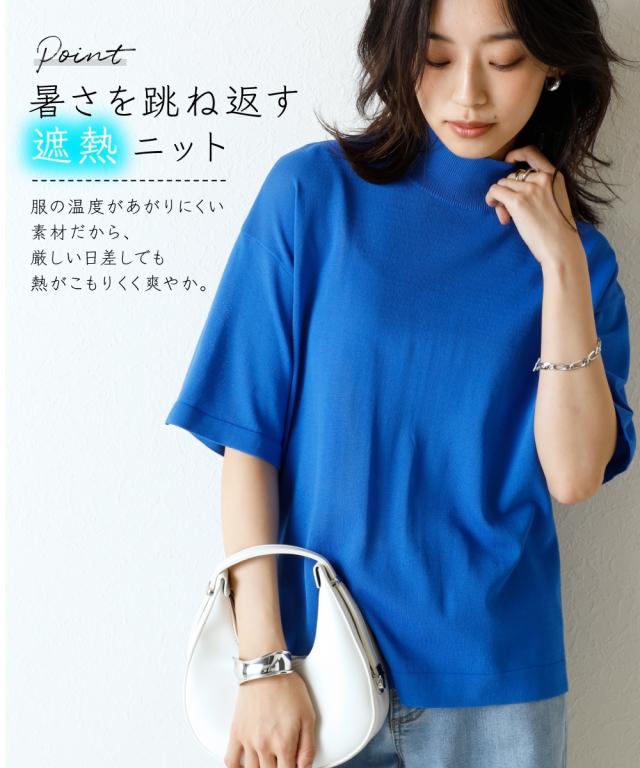 ニット セーター レディース アイスクリーンプレミアム ハイネック 5分袖 トップス 持続冷感 接触冷感 毛玉になりにくい UVカット 洗濯機で洗える 遮熱 ニッセン