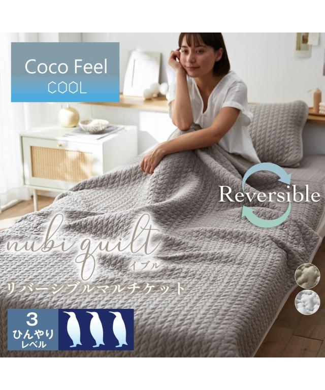 ひんやり冷感イブルとやわらかニットのリバーシブルマルチケットで、寝苦しい夜も快適に!接触冷感面は接触サラリとしており、触れた瞬間にひんやりとした涼しさを感じられます。ニット面は肌触りが良く、やわらかな風合いで快適な寝心地です。●種類【マルチケットの魅力】マルチケットとは、マルチに使えるキルティング加工が施されたケットのことをいいます。 薄手の生地の間に中綿が少し入っていて、キルティング加工されているので中綿が偏らなくなっています。 寝具としてはもちろん、お昼寝用のケット、プレイマット、ソファーカバー、ラグパットとしてもお使い頂けます。●ブランド・シリーズ【CocoFeel】ココフィールってCoco Feel 『ココフィール』は、肌触りの「ここち良さ」にトコトンこだわったニッセンの寝具を中心としたオリジナルブランドです。ここち良さに包まれて眠りたい。をコンセプトに、ここち(心地)良さ・快適(Comfortable)を感じていただける寝具を、心(こころ)を込めて。デザイン性や機能性はもちろん、肌触りの良さにこだわった寝具で眠る幸せをお届けしたい。ニッセンのCoco Feelシリーズは、お一人お一人の眠りに寄り添います。触れると幸せを感じるような快適(com