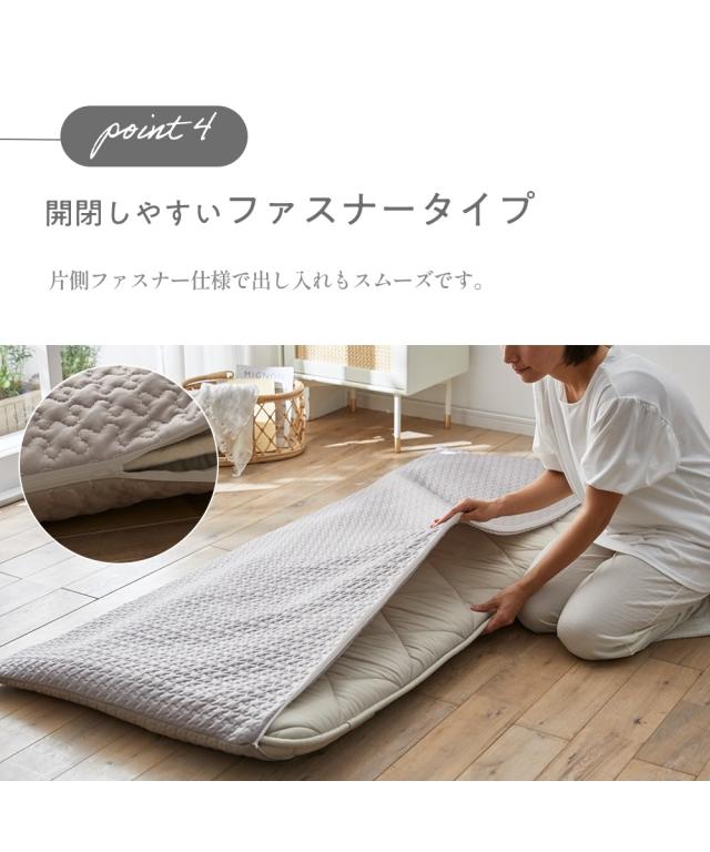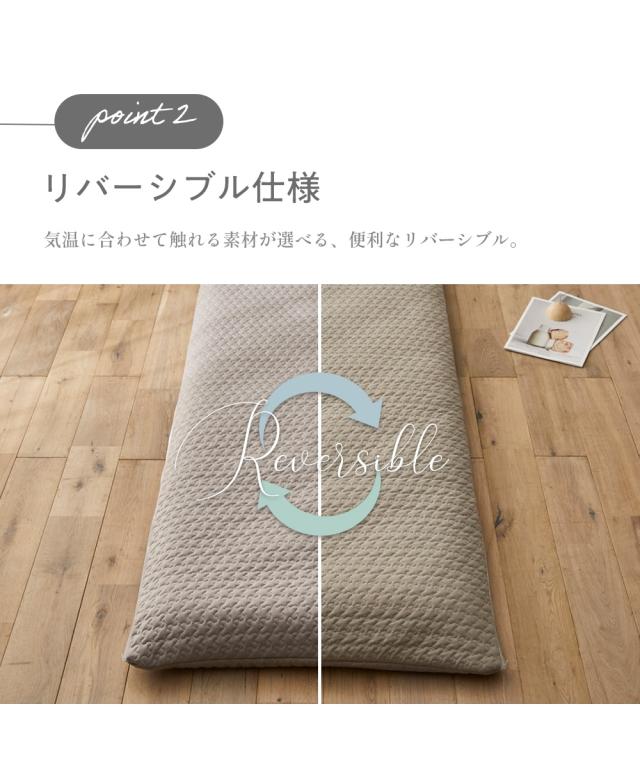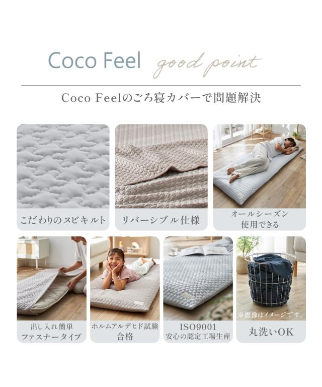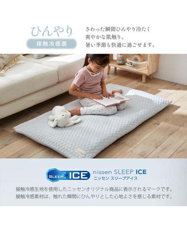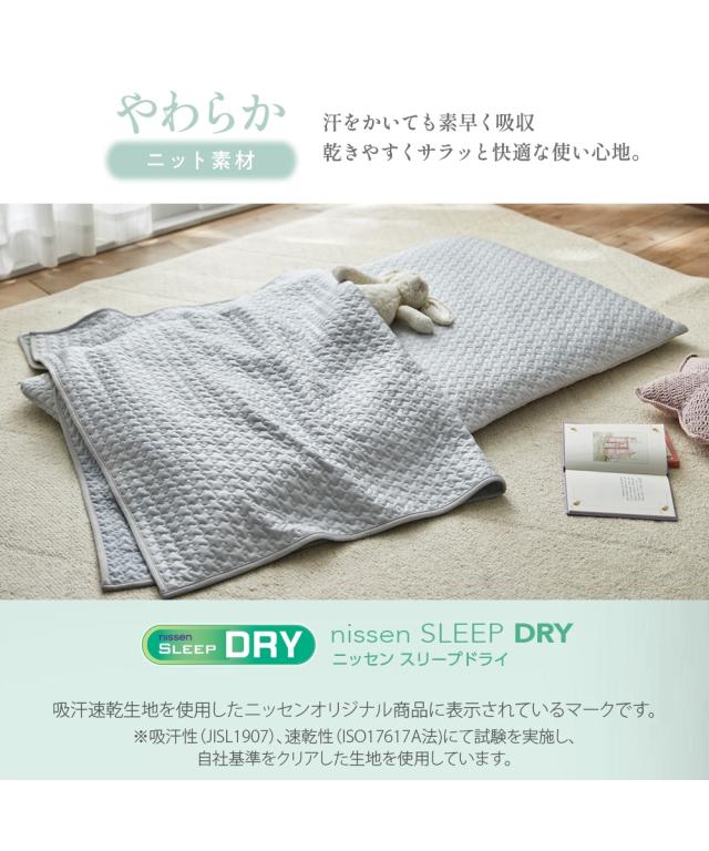 ひんやり冷感イブルとやわらかニットのリバーシブルごろ寝布団カバーで、寝苦しい夜も快適に!接触冷感面は接触サラリとしており、触れた瞬間にひんやりとした涼しさを感じられます。ニット面は肌触りが良く、やわらかな風合いで快適な触り心地です。ごろ寝マットは、ソファや床に敷いてお昼寝したり、読書や映画鑑賞を楽しんだり、様々なシーンで活躍します。そのマットが汚れないように、カバーできるこちらの商品は、洗濯機で丸洗いできるので、いつでも清潔にお使いいただけます。●ブランド・シリーズ【CocoFeel】ココフィールってCoco Feel 『ココフィール』は、肌触りの「ここち良さ」にトコトンこだわったニッセンの寝具を中心としたオリジナルブランドです。ここち良さに包まれて眠りたい。をコンセプトに、ここち(心地)良さ・快適(Comfortable)を感じていただける寝具を、心(こころ)を込めて。デザイン性や機能性はもちろん、肌触りの良さにこだわった寝具で眠る幸せをお届けしたい。ニッセンのCoco Feelシリーズは、お一人お一人の眠りに寄り添います。触れると幸せを感じるような快適(comfortable) さを、こころを込めてお届けします。【nissen SLEEP DRY】スリープドライって吸汗速