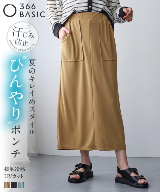 大きいサイズ 汗染みにくいひんやりポンチナロースカート(接触冷感・UVカット)