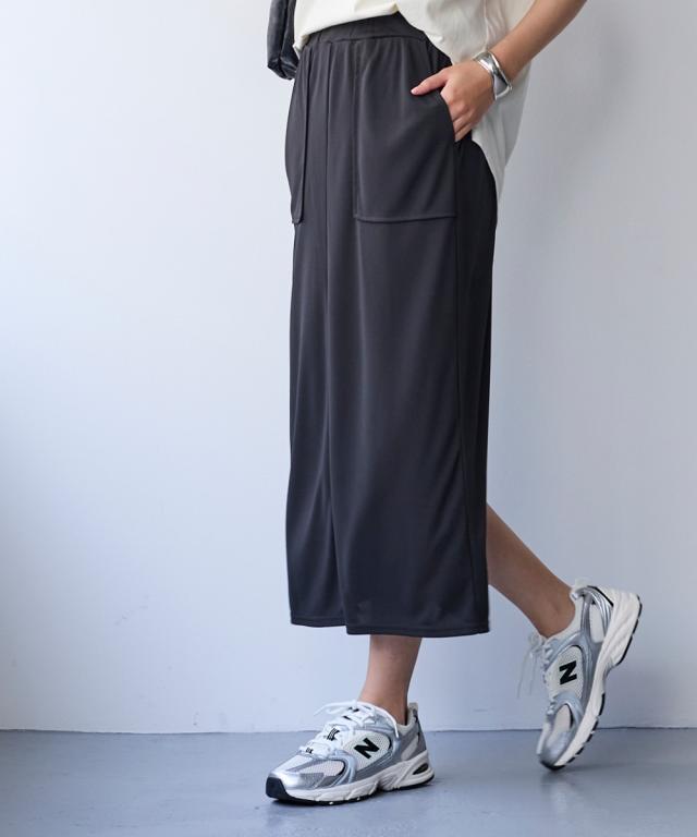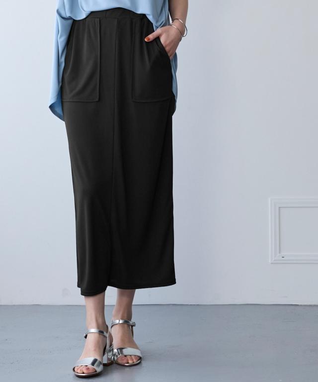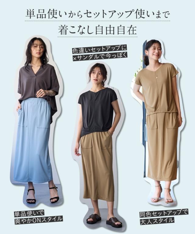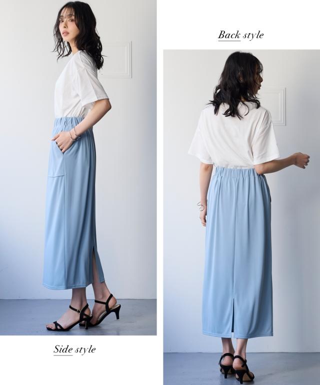 【汗じみしにくい 夏に嬉しいスタイルUPナロースカートが登場】 ■デザイン ・光沢感があり布帛見えするキレイ目カットソー素材 すっきり細めなシルエットですが体型を拾わずキレイに着こなして頂けます ・キレイめにもカジュアルにも着こなして頂けます ■素材 さらりとした肌触りに、接触冷感・UVカットの夏素材。 汗を吸うのに表面まで染み出しにくい加工で汗ジミが目立たず、ベタつかず快適 ■コーディネイト ベーシックだからこそシルエットにこだわり、どんなアイテム共コーディネイト自在