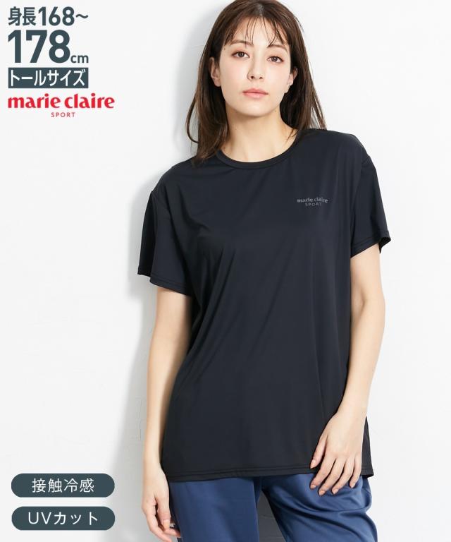 marie claire SPORT スポーツウェア トップス トールサイズ レディース 高身長 フレンチ袖風後タックTシャツ 接触冷感 UVカット 夏 3L/4L/5L ニッセン nissen