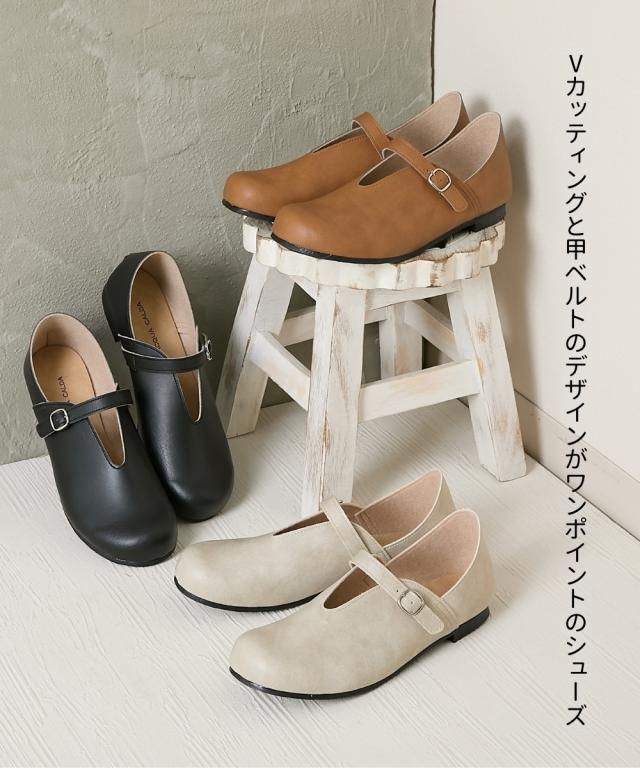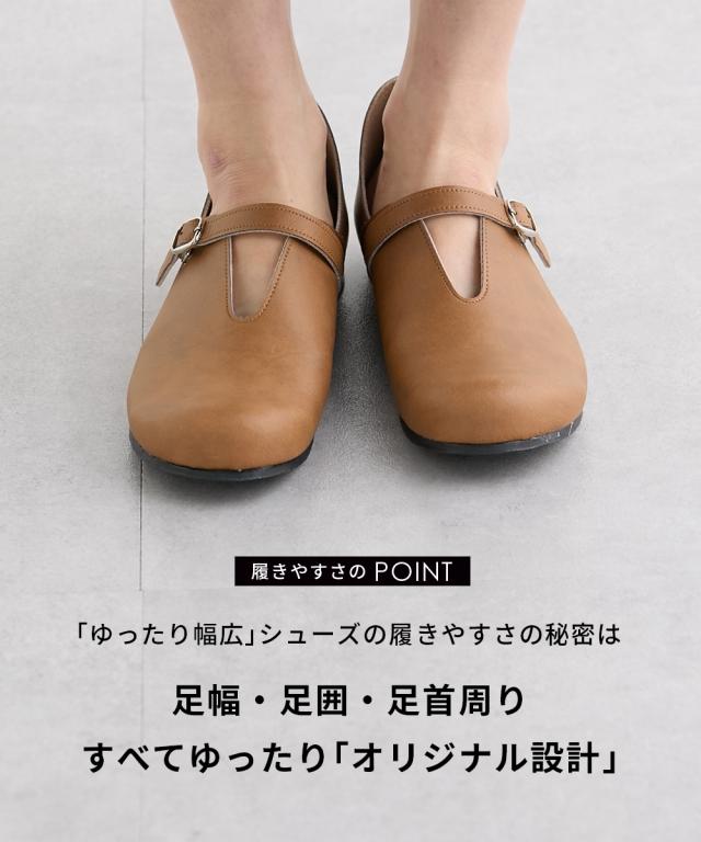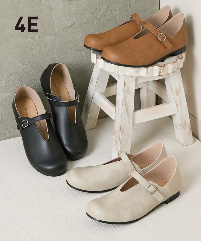 大きいサイズ レディース ゆったり幅広 日本製やわらかVカット ストラップ シューズ ワイズ4E シューズ 24.0cm/4E/24.5cm/4E ニッセン nissen