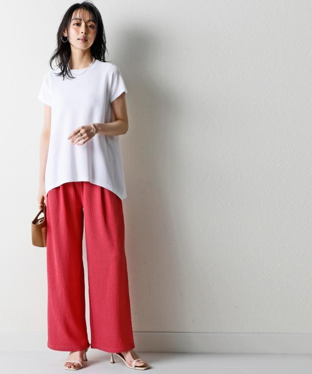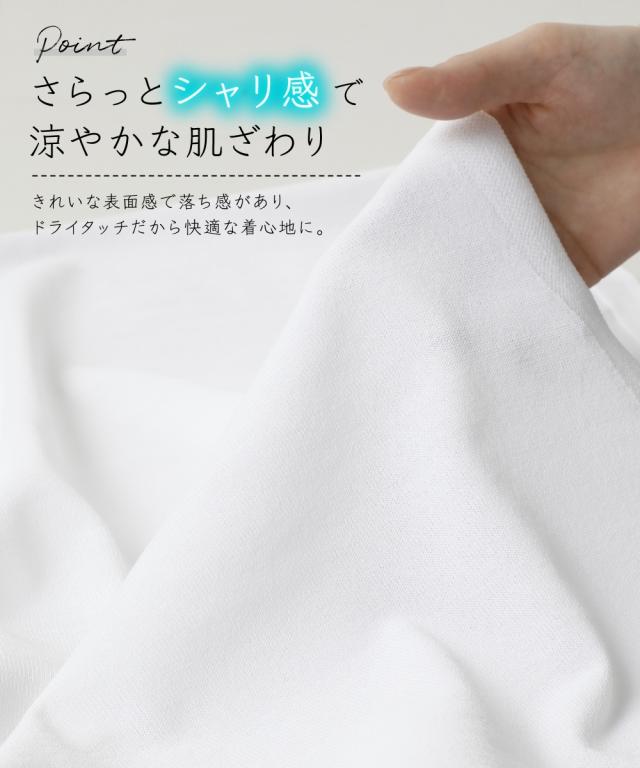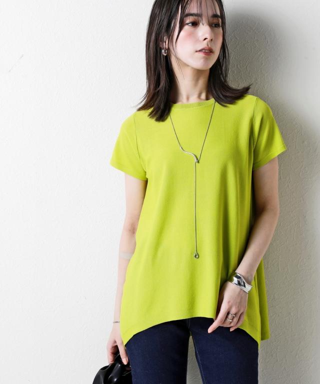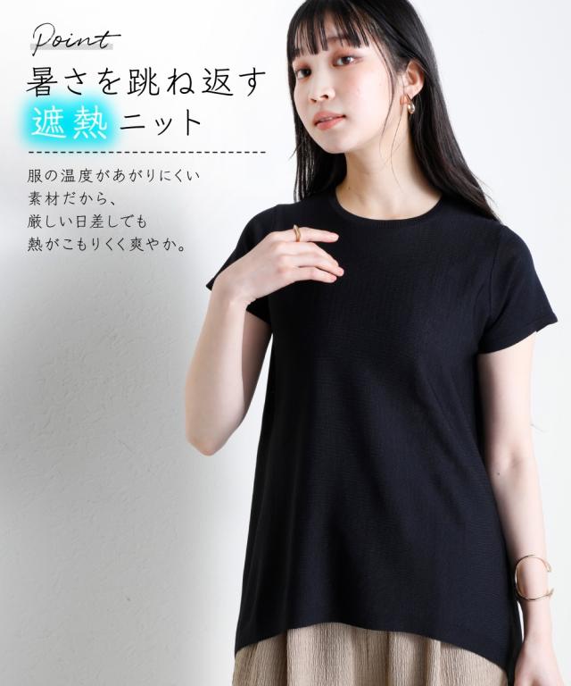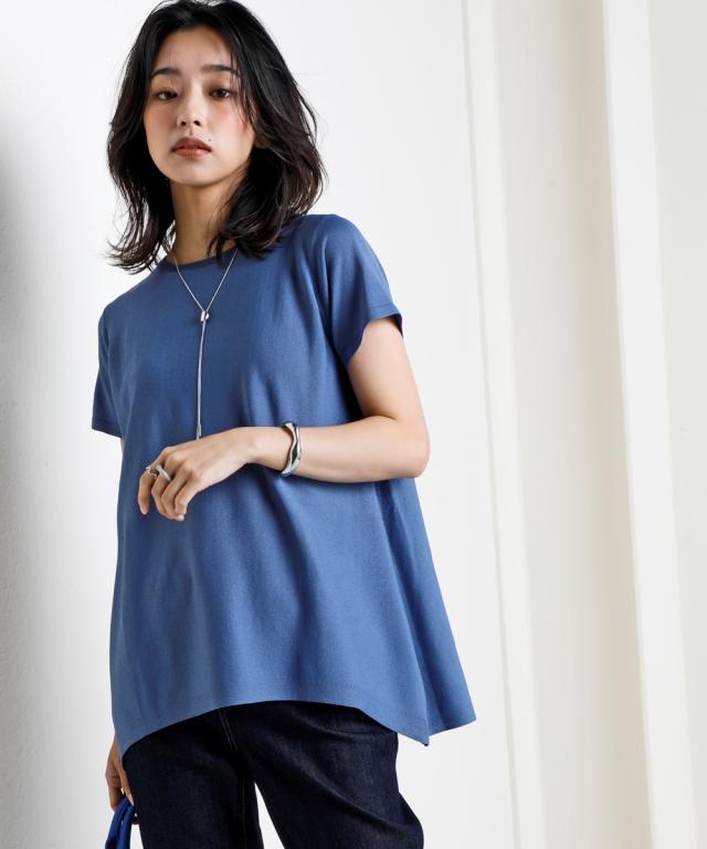暑い季節に嬉しい!ひんやりが続く「持続冷感」の新素材ニットシリーズです。 ■デザイン 首元はすっきりクルーネックにAラインのシルエットで大人カワイイ半袖ニットトップス。 ゆるっとしたシルエットがリラックス感を出し、抜け感を出してくれます。 気になる腰回りなどをカバーする、やや長めの丈感ながら、前裾を少し短くする事で足長効果を計算しています。 シンプルなデザインなのでどんなスタイリングにも合う着回し力抜群なアイテムです。 ■素材 さらっとシャリ感のある涼やかな肌触りで快適な着心地。 毎日着るものだからこそ、素材の品質と機能性にこだわりました。 ・ひんやりが続く持続冷感加工 ・毛玉になりにくく、きれい長持ち ・服の温度が上がりにくい遮熱素材 ・UVカット素材 ・洗濯機で洗えるのでお手入れもラクラク ■おすすめのスタイリング パンツとのスタイリングがおすすめ。 安心感のある長めの着丈で細身パンツと好相性です。ワイドパンツにも合わせられ、幅広い着こなしが楽しめます。 Iラインスカートとの相性も