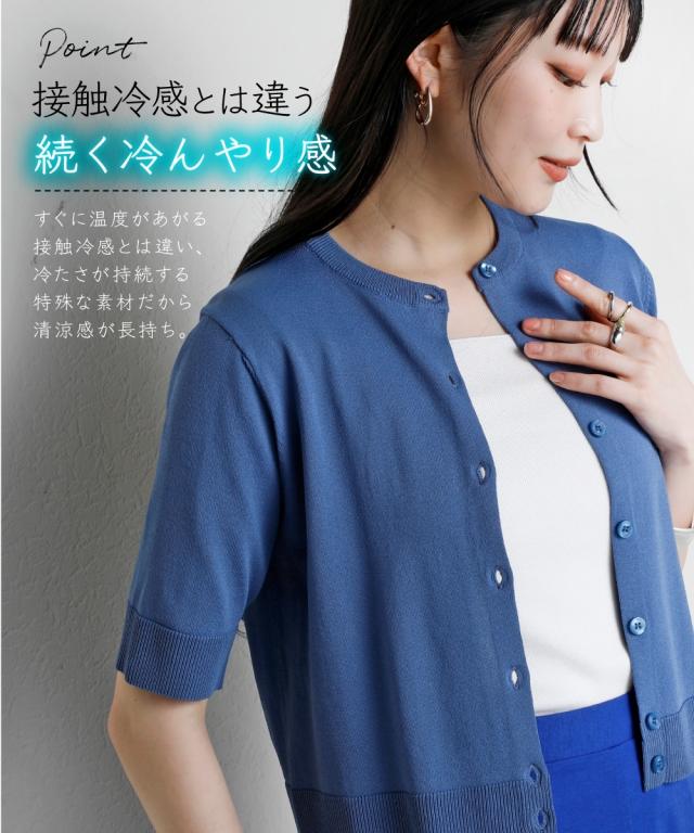 カーディガン ニット レディース クルーネック 5分袖 持続冷感 接触冷感 毛玉になりにくい UVカット 洗濯機で洗える 遮熱 ニッセン nissen