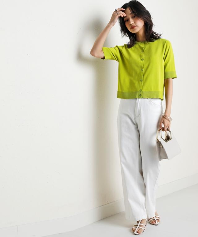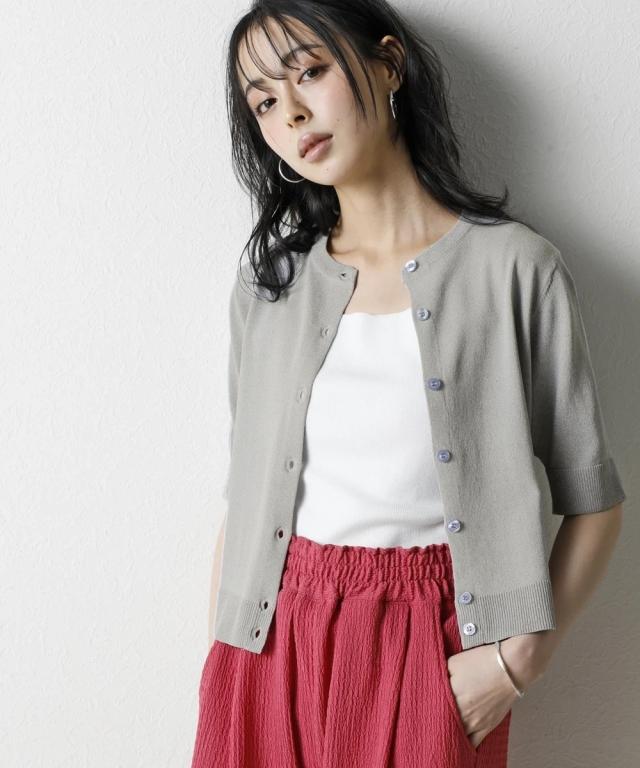 暑い季節に嬉しい!ひんやりが続く「持続冷感」の新素材ニットシリーズです。 ■デザイン 無駄を削ぎ落とした、シンプルで美しいクルーネックデザイン。 どんなスタイルにも合わせやすい、着回し力抜群のベーシックアイテムです。 ロングシーズン使えて、二の腕をさりげなく隠せる5分袖。 程よいフィット感と、ワンピの羽織やハイウエストボトムスに使えるコンパクト丈。 ノースリーブやキャミソールなどのコーディネートに重宝する1着です。 冷房などの冷え対策にもおすすめ。 オフィスにもカジュアルにも、シーンを選ばず活躍します。 ■素材 さらっとシャリ感のある涼やかな肌触りで快適な着心地。 毎日着るものだからこそ、素材の品質と機能性にこだわりました。 ・ひんやりが続く持続冷感加工 ・毛玉になりにくく、きれい長持ち ・服の温度が上がりにくい遮熱素材 ・UVカット素材 ・洗濯機で洗えるのでお手入れもラクラク ■おすすめのスタイリング Tシャツスタイルにさらりと羽織ってこなれ感をプラス。 オフィスでは、ブラウスやカットソーに重ねて、きちんと感を演出。 ワンピースやスカートと合わせて、フェミニンな着こなしも楽しめます。 同系色のボトムスと合わせて、セットアップ風に