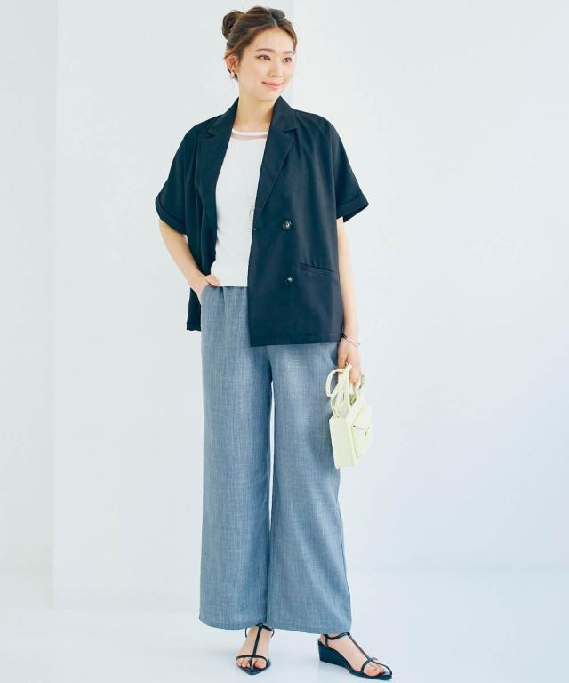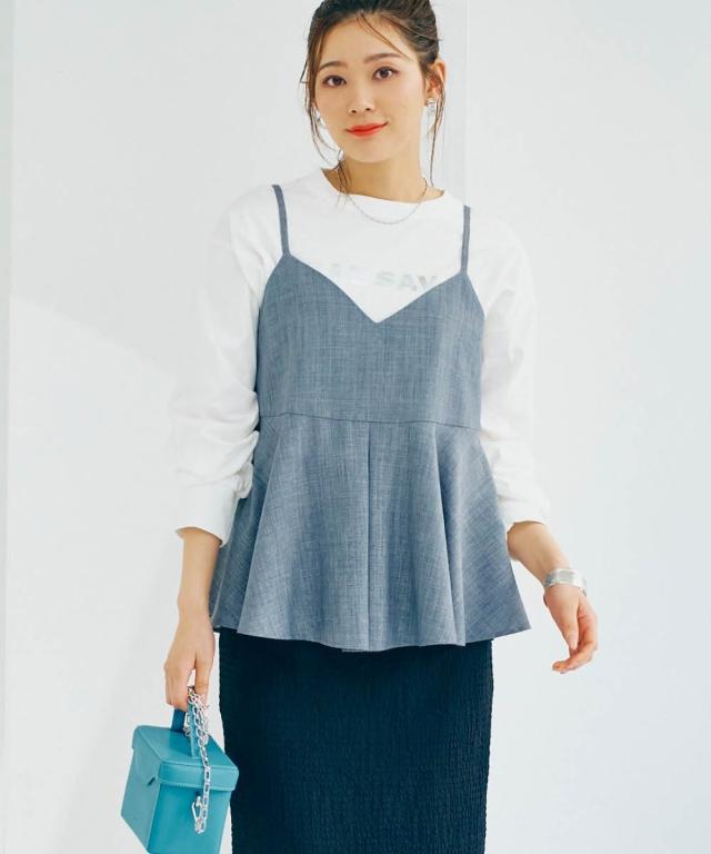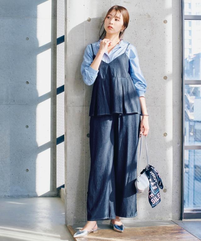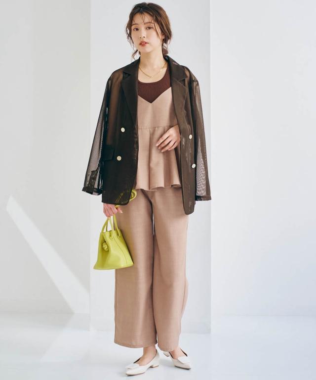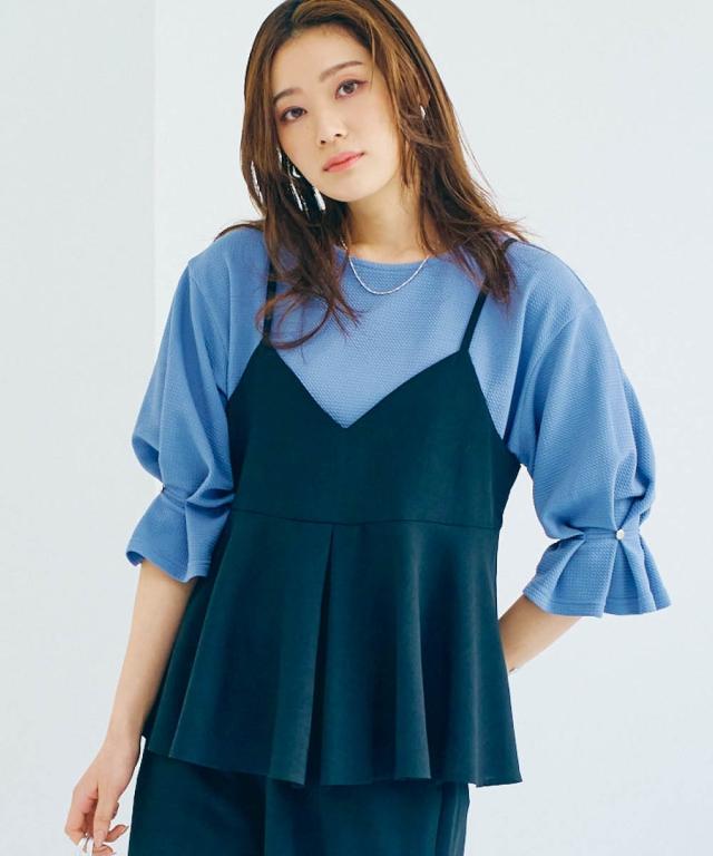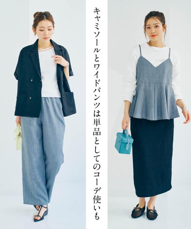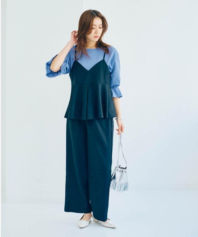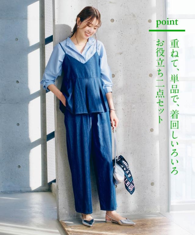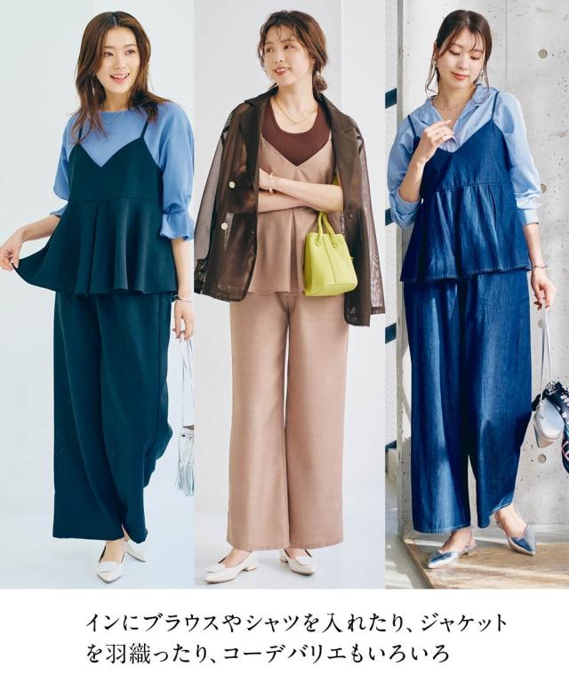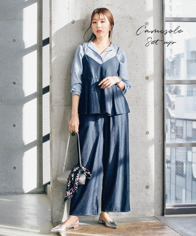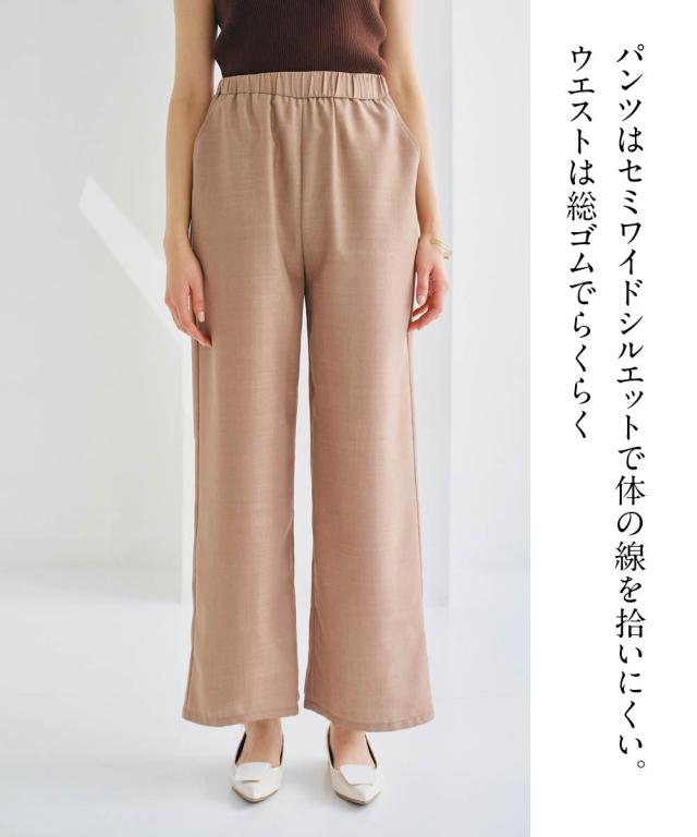 シャツ ブラウス レディース キャミソール セットアップ タック +セミワイド パンツ 有 S/M/L/LL ニッセン nissen