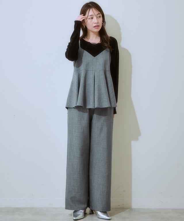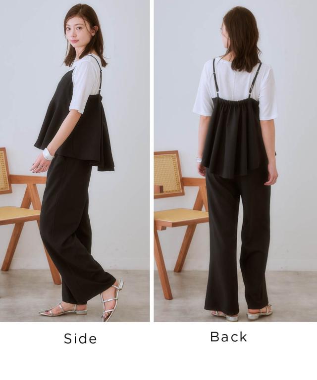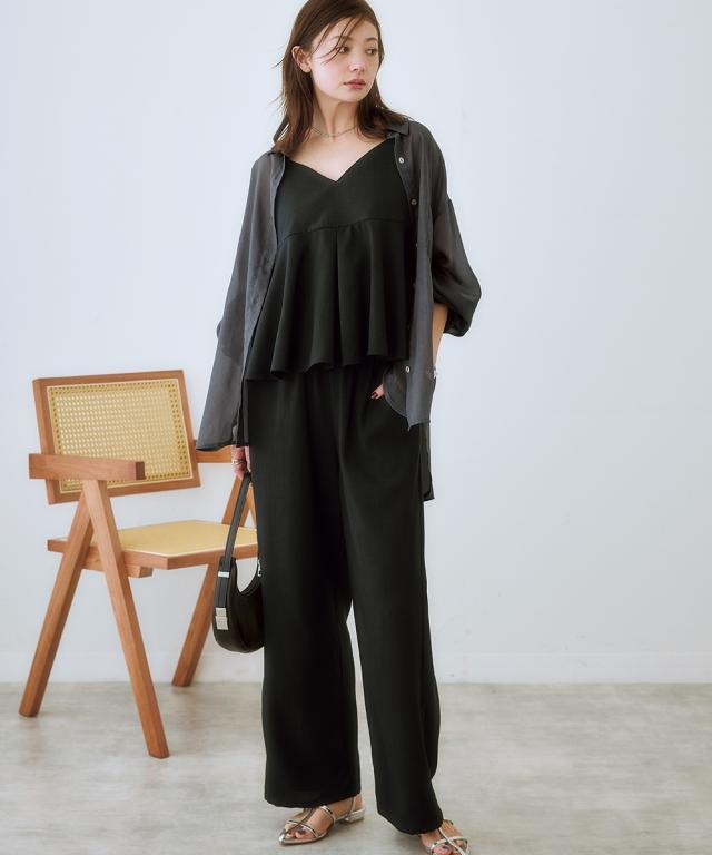 シャツ ブラウス レディース キャミソール セットアップ タック +セミワイド パンツ S/M/L/LL