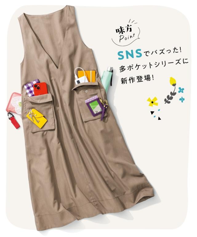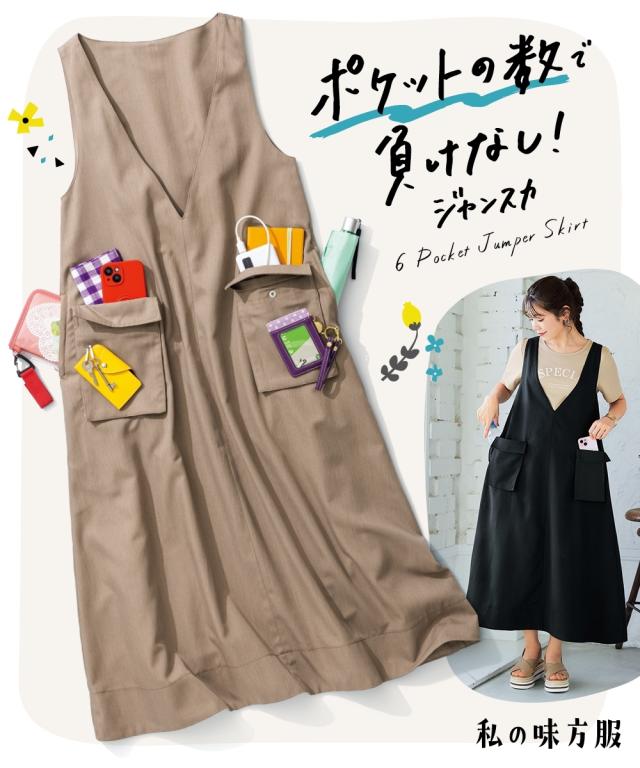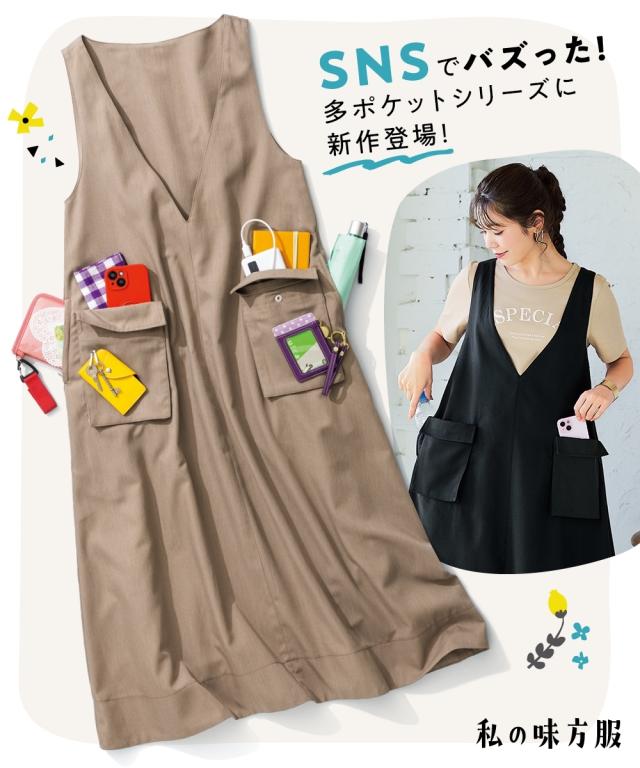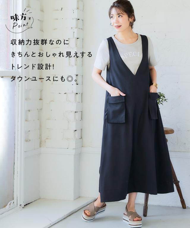 ジャンパースカート レディース 深 Vネック ジャンパー スカート 大容量多ポケット付 私の味方服 有 ジャンスカ ワンピース S/M/L/LL ニッセン nissen