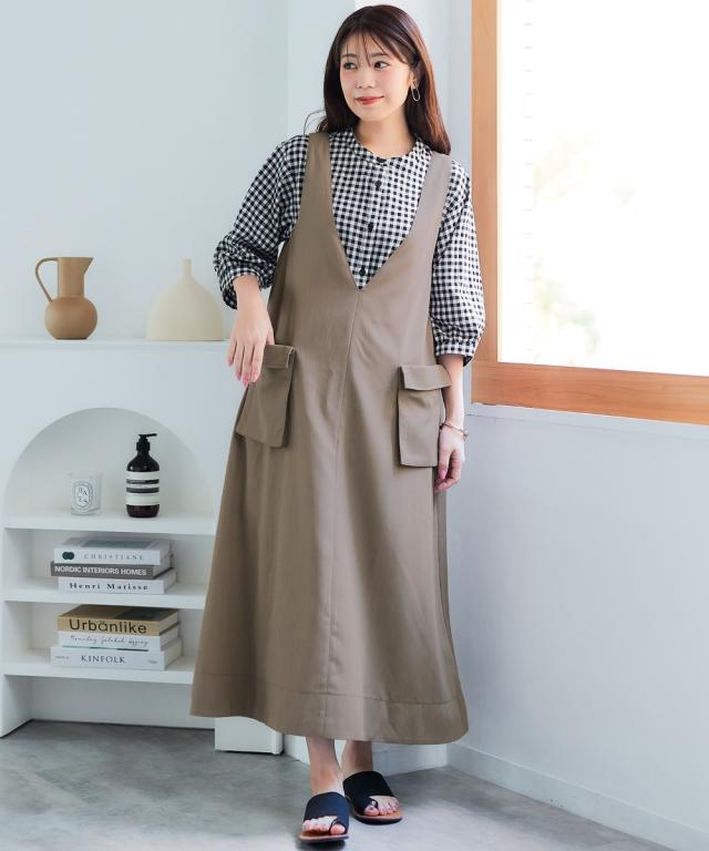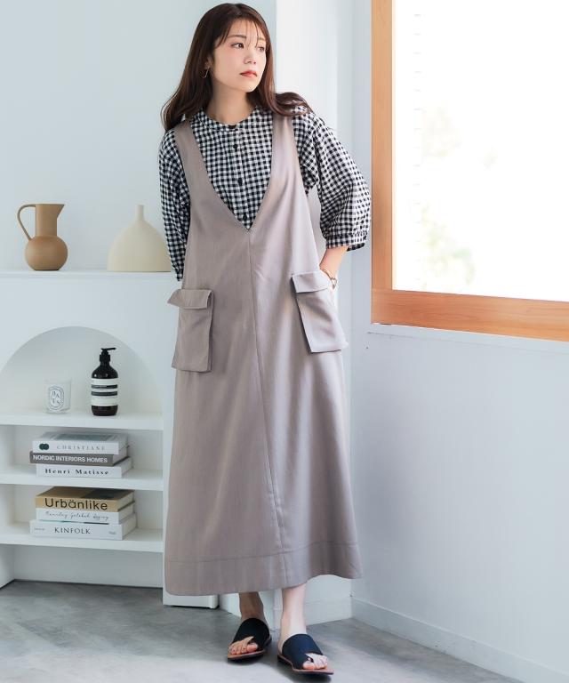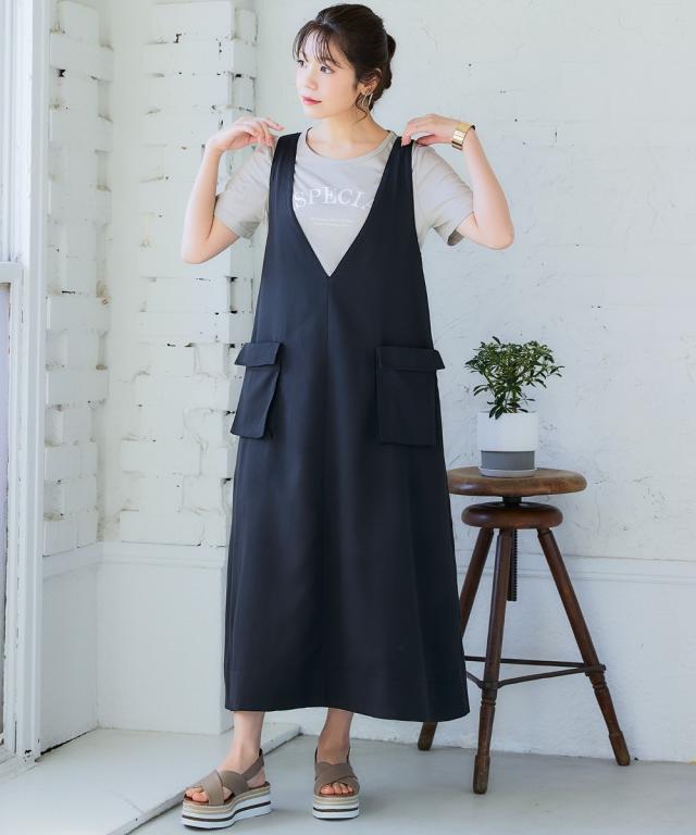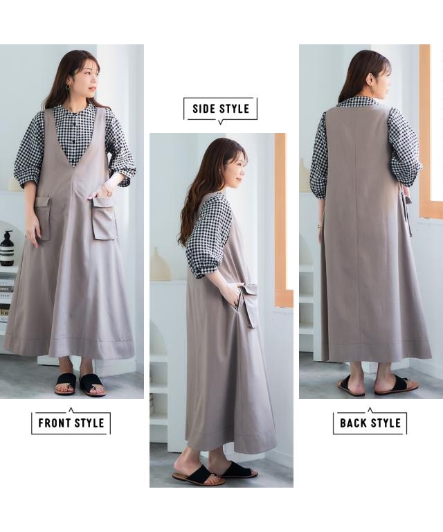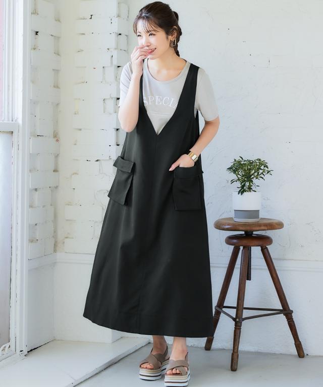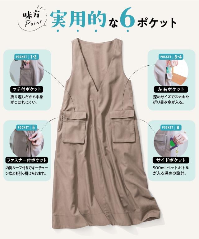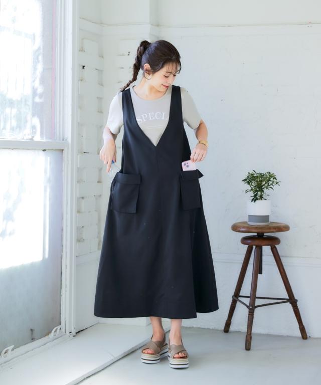 深Vネックジャンパースカート(大容量多ポケット付)【私の味方服】