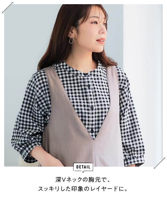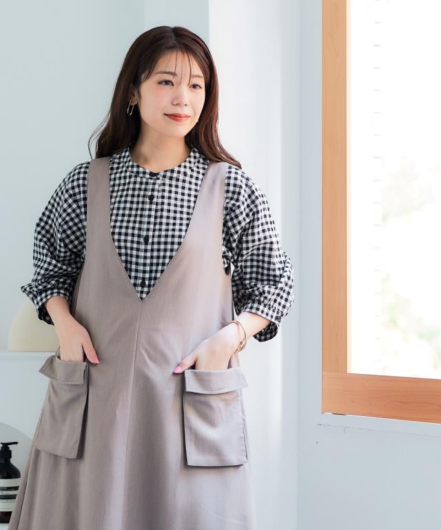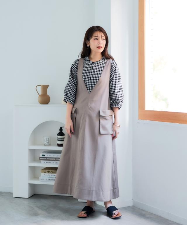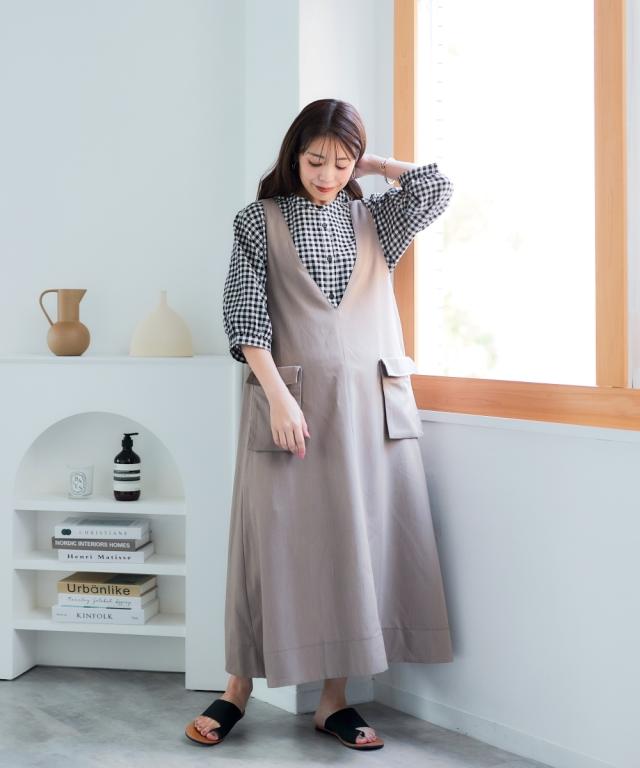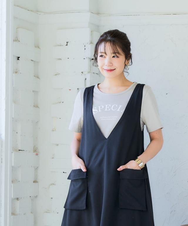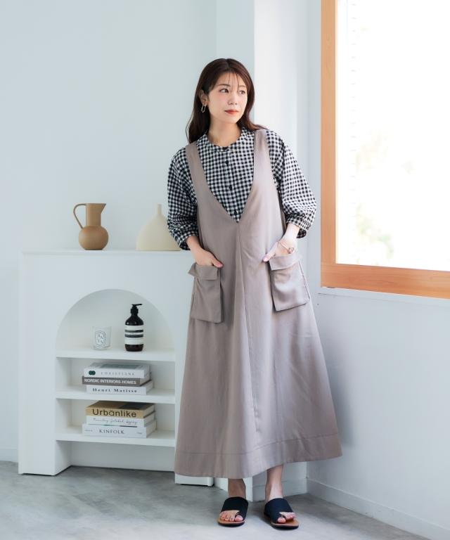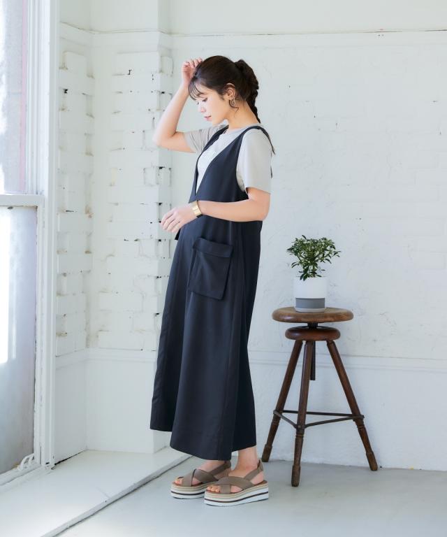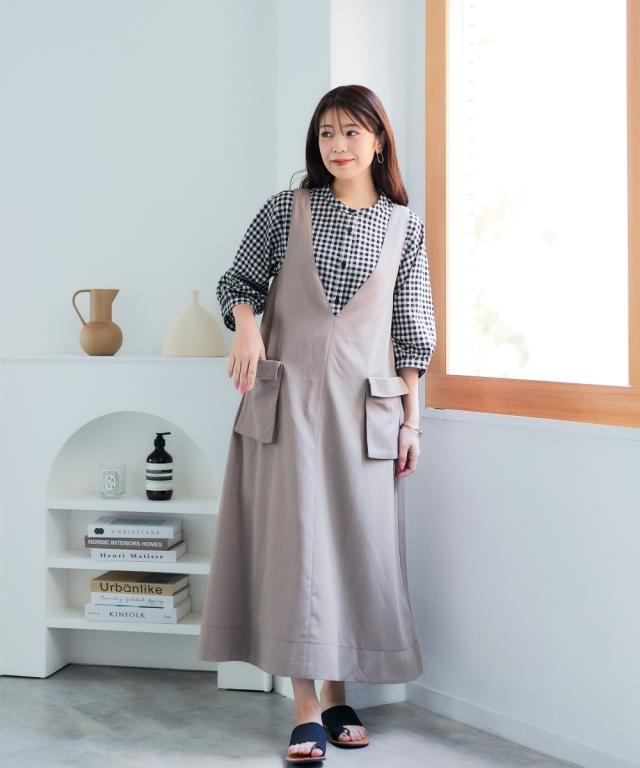 深Vネックジャンパースカート(大容量多ポケット付)【私の味方服】