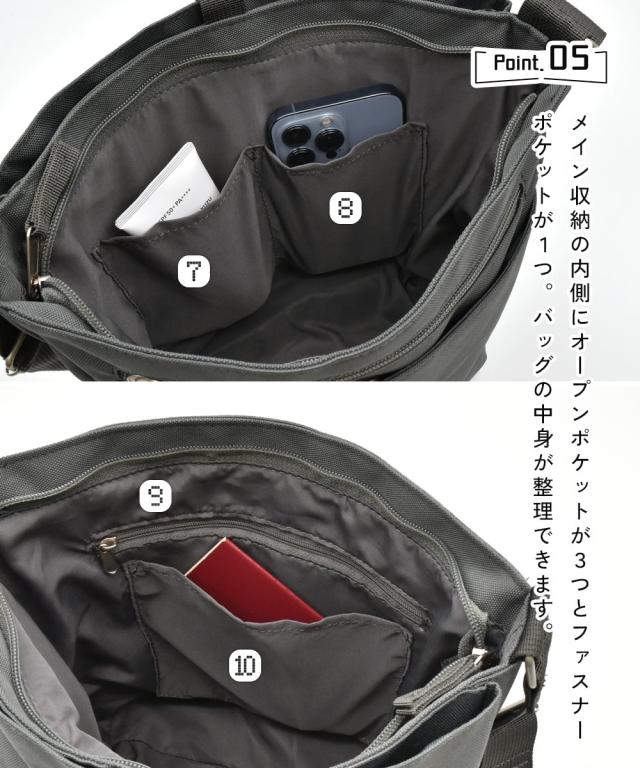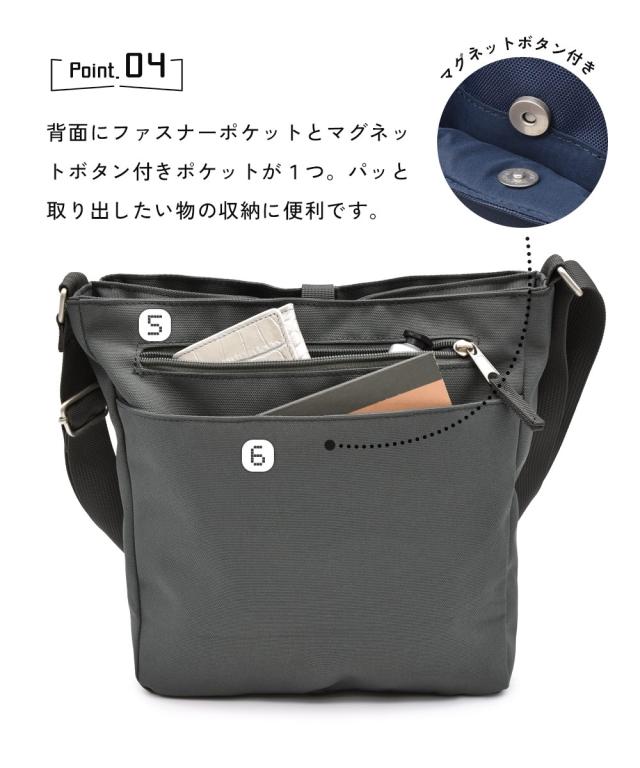 anello GRANDE(アネログランデ) 少し懐かしい風合いのある『LOMO』シリーズ。 小ぶりに見えて、なんと!10ポケット仕様・・・。 収納がいっぱいほしい方、バッグの中身が迷子になりがちな方も使いやすい仕様とサイズ感のアイテムです。 ■コーディネート すっきりとした見た目と、同色でまとめた生地のバッグなのでデニムやサロペットなどのカジュアルなアイテムとも相性 シンプルなデザインなので、シーズンレスに使えるところも ■仕様 A4は入りませんが、お出かけや旅行で実は一番使いやすいサイズ感。 約330gの軽量なので、丸一日歩き回る日にも活躍できること間違いなしのアイテムですよ。