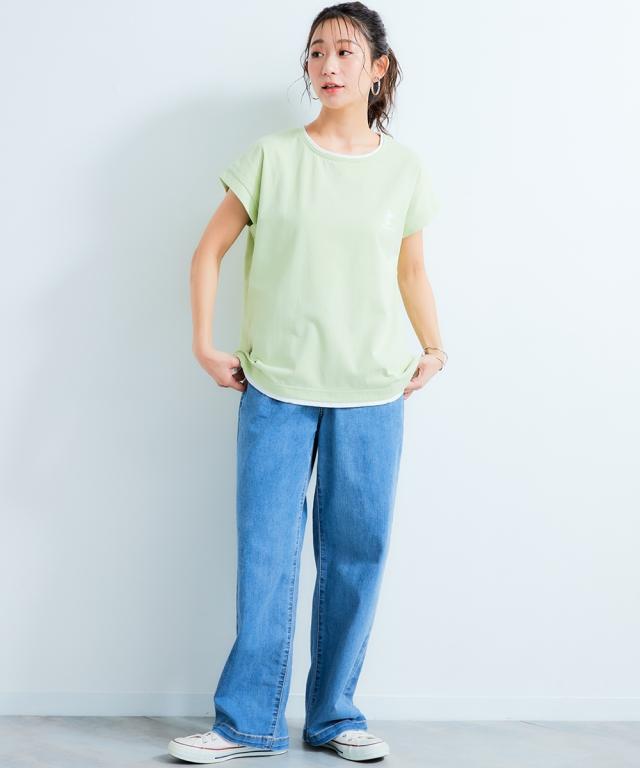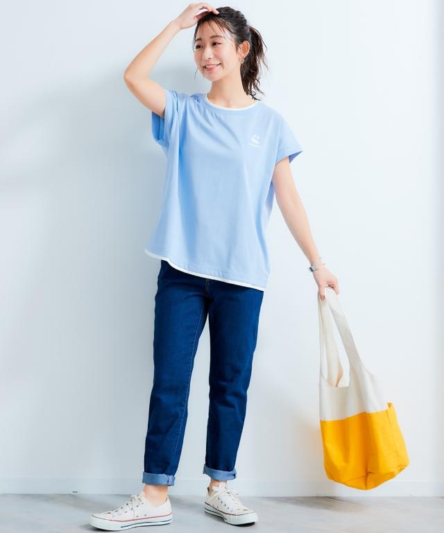 ニッセン×SEA BREEZEコラボ商品。重ね着風デザインで着こなしの幅が広がるTシャツ。接触冷感・吸汗速乾・UVカット機能付きで、快適な着心地が一日中続きます。忙しい朝も、コーデに迷うことなくサッと着られるから、忙しいあなたにピッタリ。洗濯機で洗えるからお手入れも簡単。着心地抜群なのに、お手入れも楽ちん。いつもの着こなしをワンランクアップさせたいあなたにおすすめです。 ■デザイン フレンチスリーブのデザインが、気になる二の腕をさりげなくカバー。重ね着風デザインで、シンプルながらもこなれ感を演出できます。ゆったりとしたシルエットなので、体型カバー効果も期待できます。 ■素材 綿の優しい肌触りと、ポリエステルの速乾性を兼ね備えています。吸汗速乾機能付きなので、汗をかいても快適な着心地をキープ。UVカット機能も嬉しいポイントです。 ■おすすめのスタイリング デニムと合わせてカジュアルに着こなすのがおすすめです。トートバッグを合わせると、よりこなれた印象に。