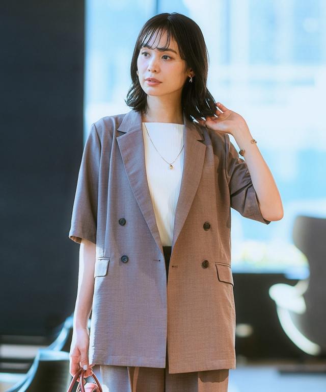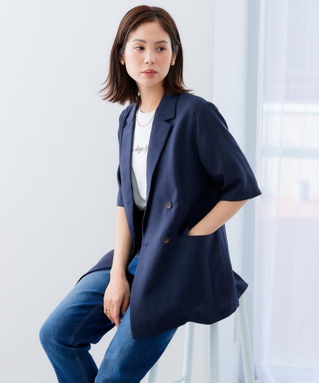 麻調合繊半袖ダブルブレストジャケット(しわになりにくい・接触冷感・UVカット・ウォッシャブル)