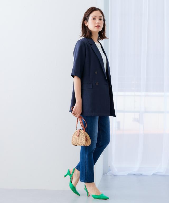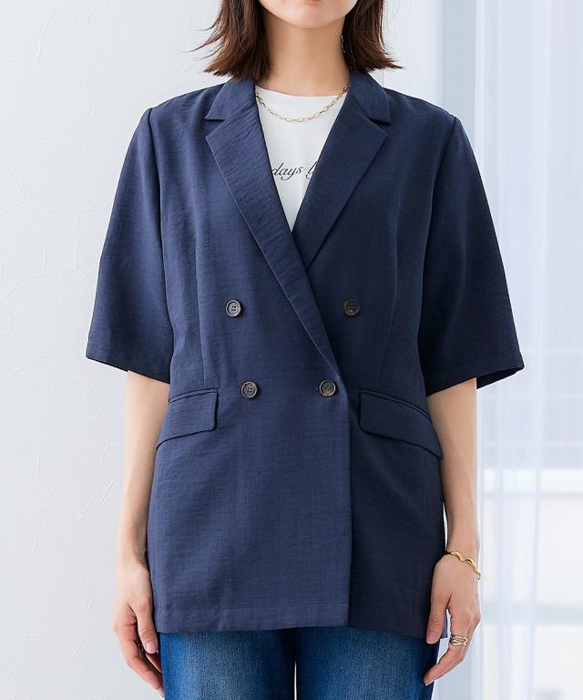 麻調合繊半袖ダブルブレストジャケット(しわになりにくい・接触冷感・UVカット・ウォッシャブル)