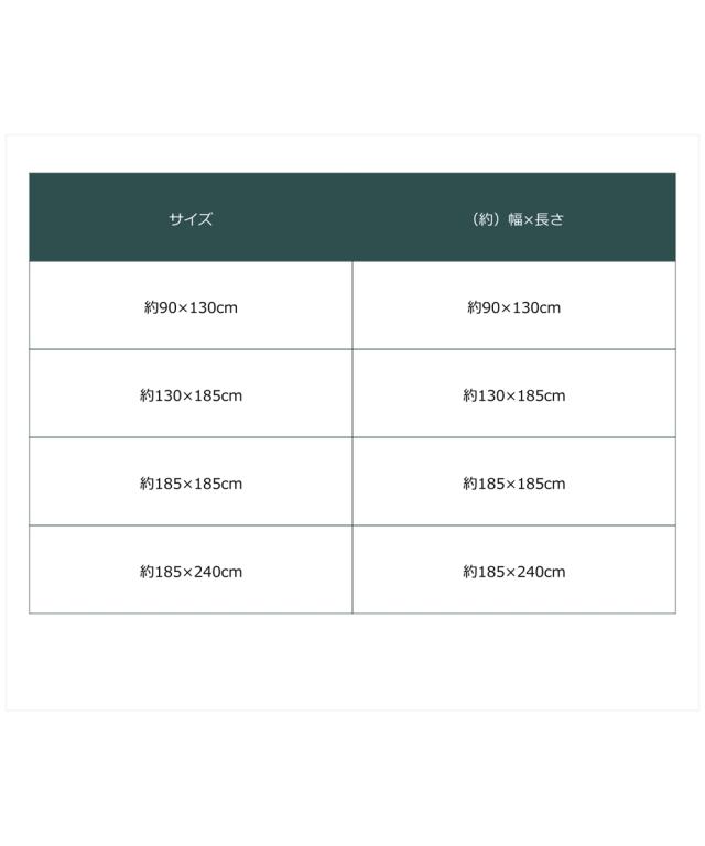 素材:表面=複合繊維(ナイロン・ポリエチレン)50%・ナイロン50%、中材=ウレタンフォーム、裏面=ポリエステル100%(滑りにくい加工付) 商品全体の厚み:5mm 毛足の長さ:なし はっ水:なし 吸湿発熱:なし 接触冷感:あり 抗菌・防臭:なし 防ダニ:なし 防炎:なし 防音:なし 静電気防止:なし すべりにくい加工:あり 梱包方法:折りたたみ ●スタッフコメント 肌ざわり:ひんやり さらりとした肌ざわり 厚み、クッション性:扱いやすい薄手タイプ コメント:とにかく価格が魅力の接触冷感ラグです
